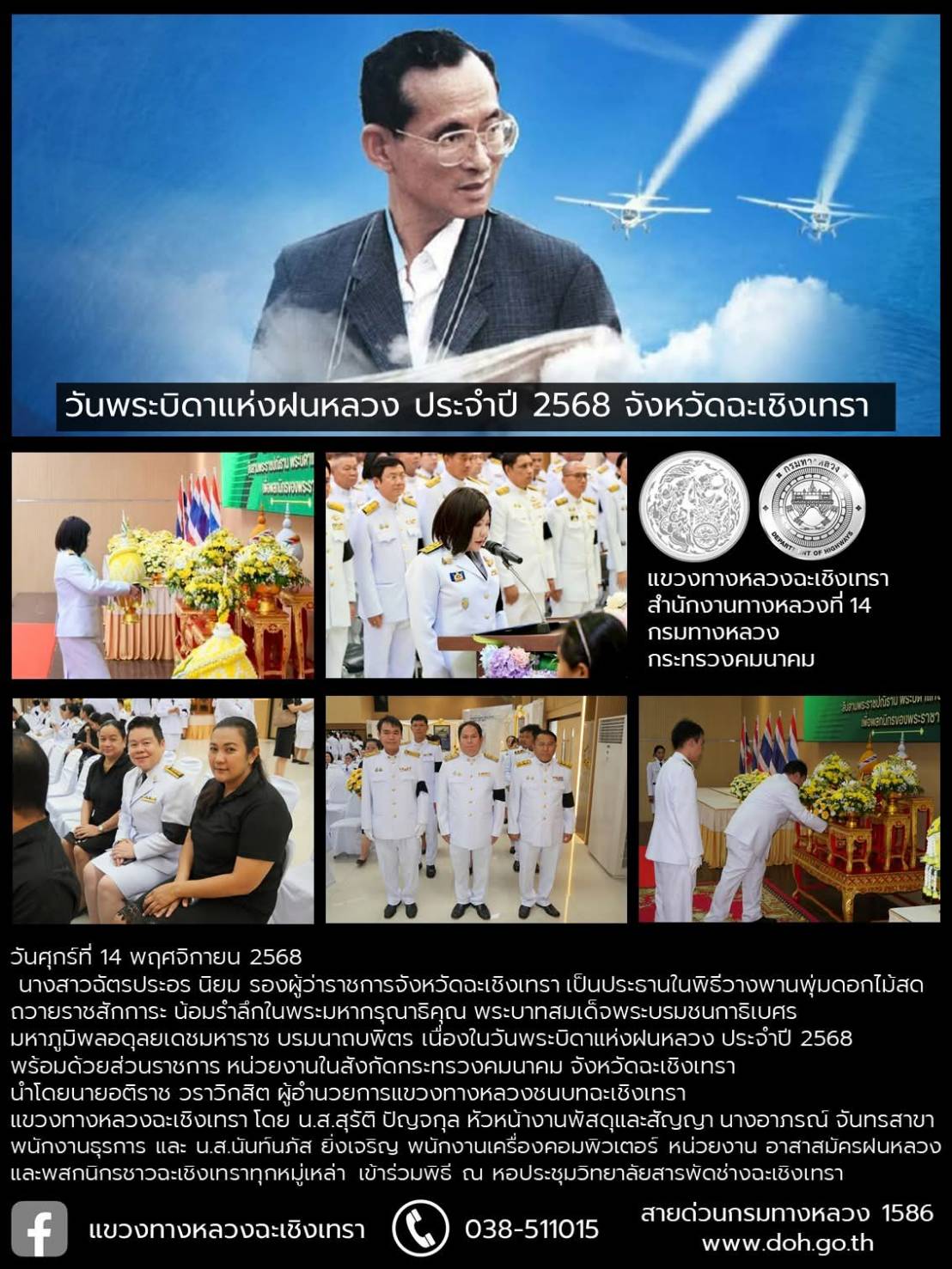 วันพระบิดาแห่งฝนหลวง ประจำปี 2568 จังหวัดฉะเชิงเทรา