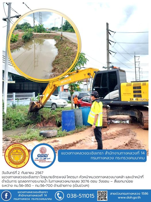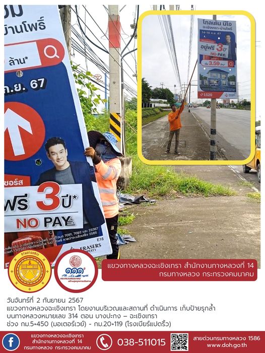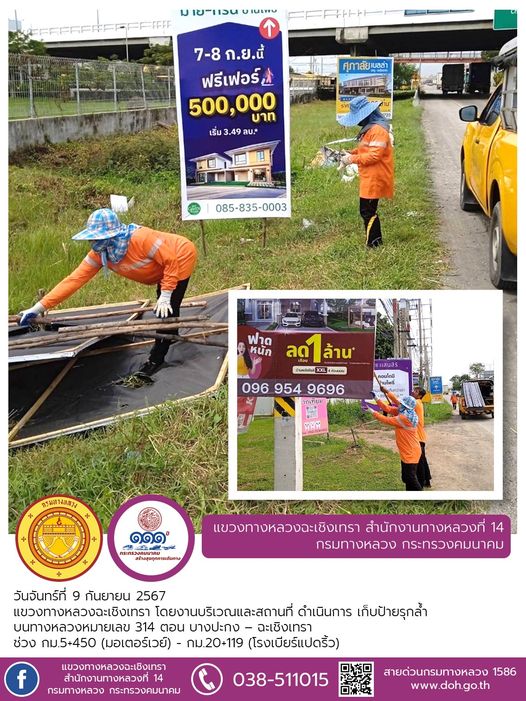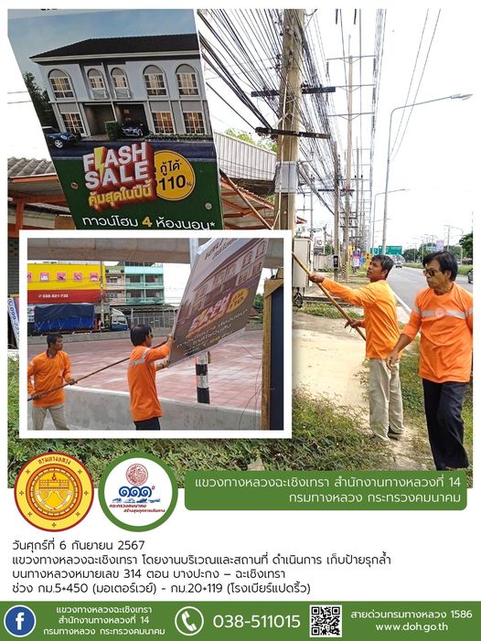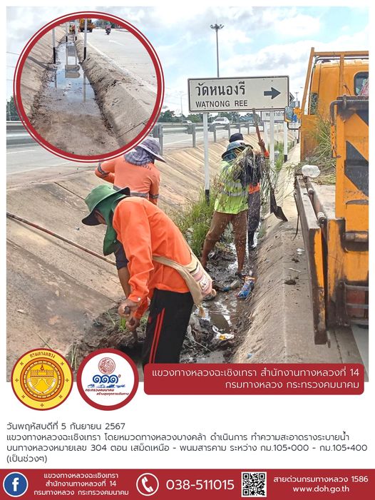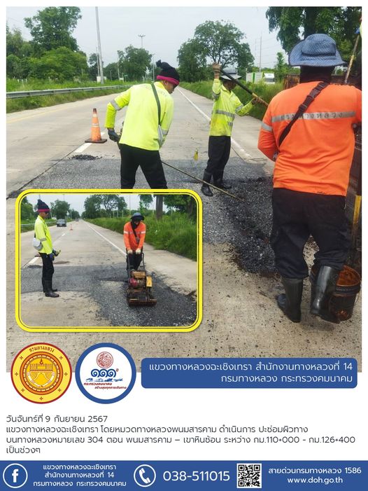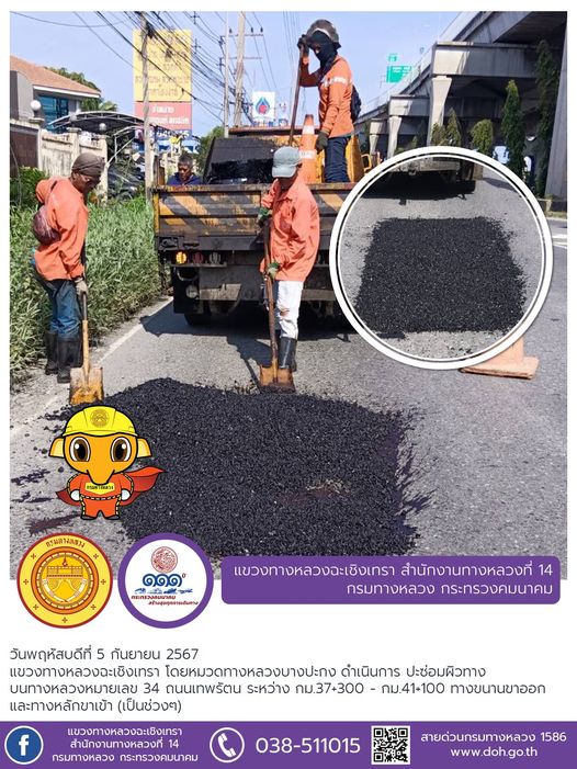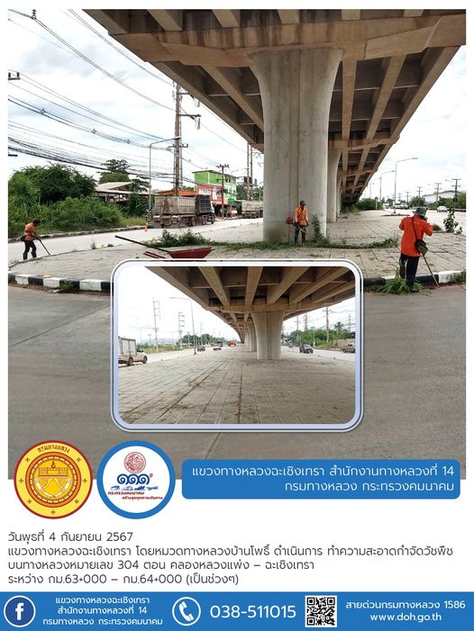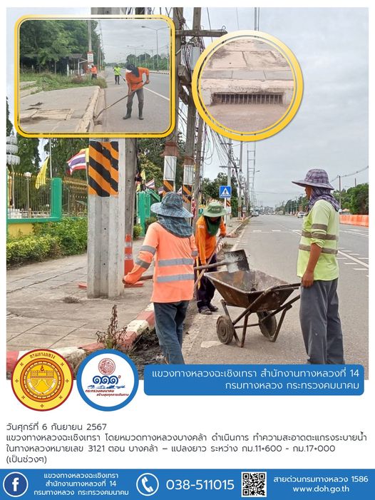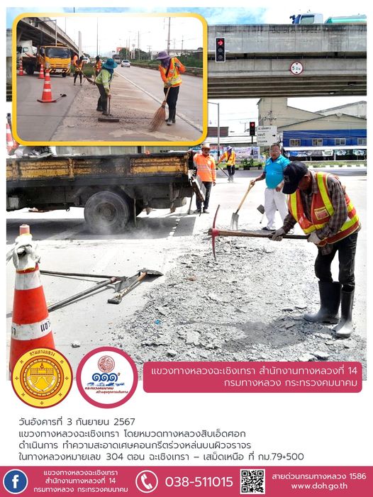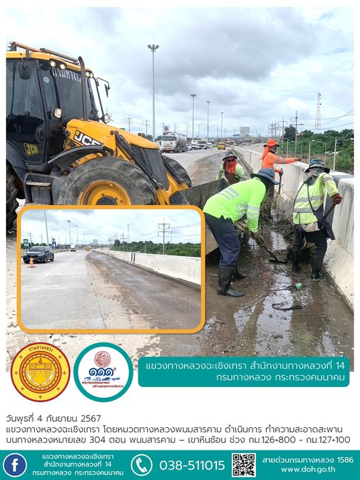ทำความสะอาดเศษคอนกรีตบนผิวจราจร |