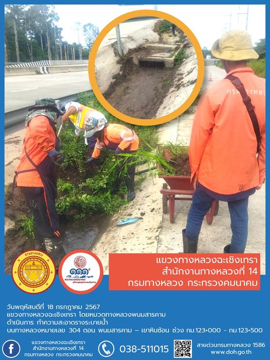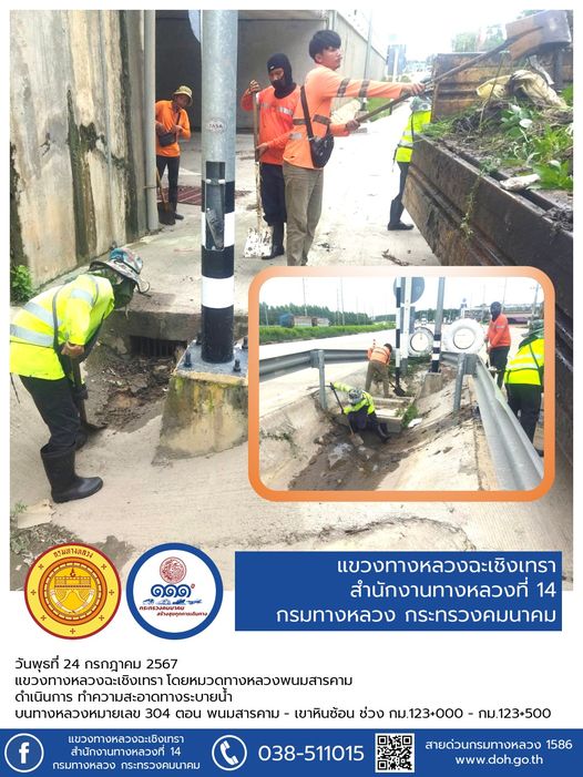 ทำความสะอาด กำจัดวัชพืช เกาะกลางและสะพาน |