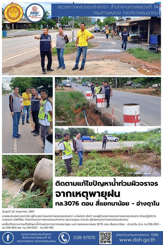 ติดตามแก้ไขปัญหาน้ำท่วมผิวจราจร จากเหตุพายุฝน ทล.3076 ตอน สี่แยกนาน้อย - อ่างฤาไน |