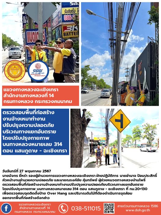 ตรวจสอบพื้นที่ก่อสร้างงานจ้างเหมาทำงานปรับปรุงความปลอดภัยบริเวณทางแยกอันตราย |