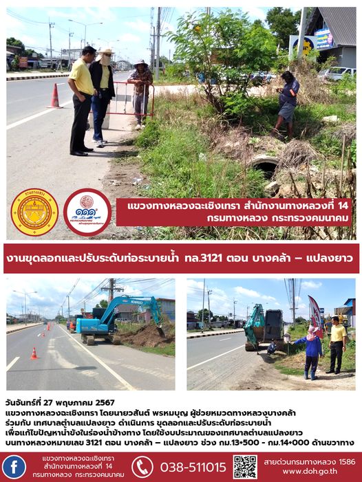 งานขุดลอกและปรับระดับท่อระบายน้ำ เพื่อแก้ไขปัญหาน้ำขังในร่องน้ำข้างทาง |