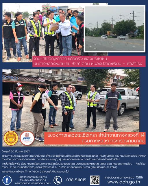 แก้ไขปัญหาความเดือดร้อนของประชาชน บนทางหลวงหมายเลข 3551 |