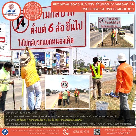 ติดตั้งป้าย “ห้ามกลับรถ ตั้งแต่ 6 ล้อ ขึ้นไป ให้ไปกลับรถแยกหนองเค็ด” |