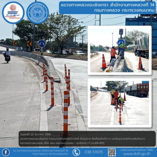 งานติดตั้งหลักนำทาง และสัญญาณไฟกระพริบหัวเกาะ |