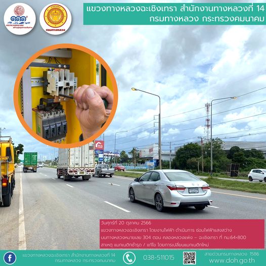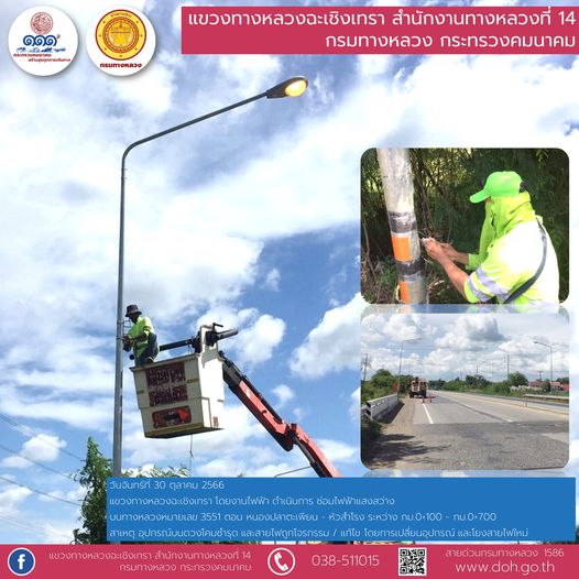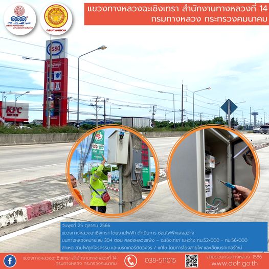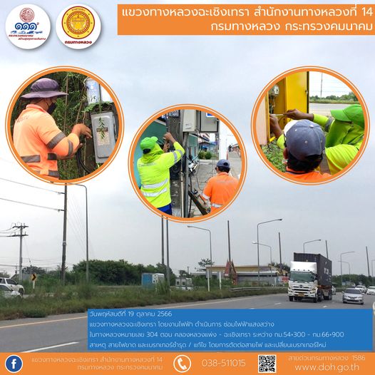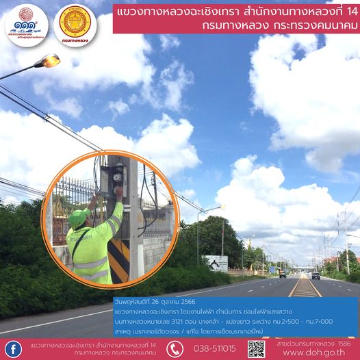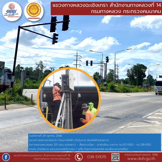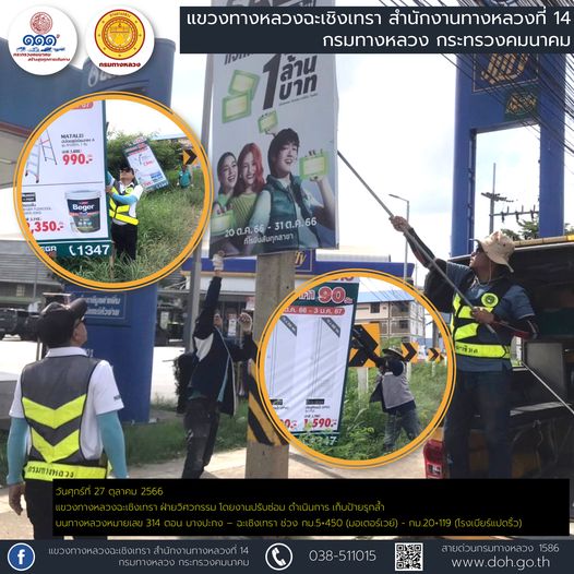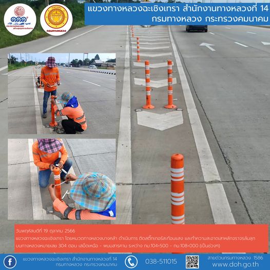 งานติดสติ๊กเกอร์สะท้อนแสง และทำความสะอาดเสาหลักจราจรล้มลุก |