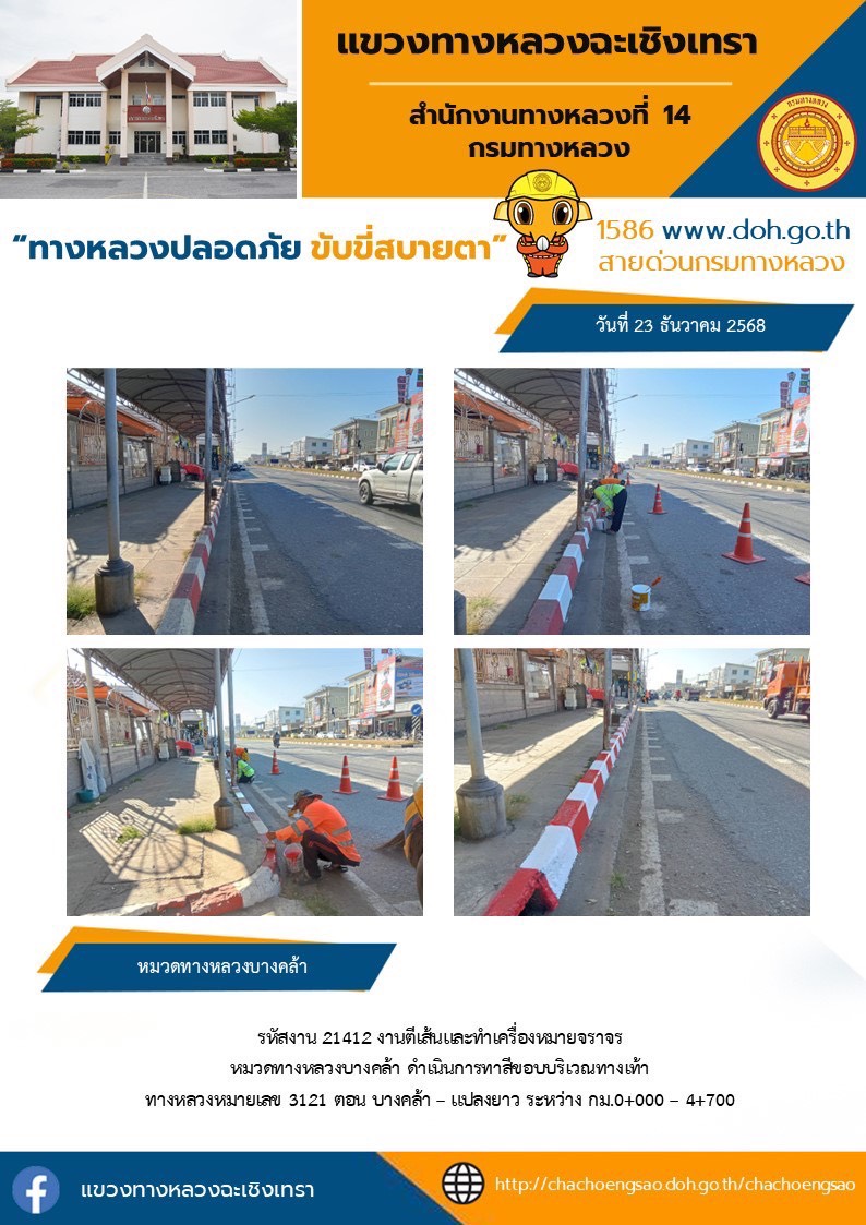 งานตีเส้นเเละทำเครื่องหมายจราจร |