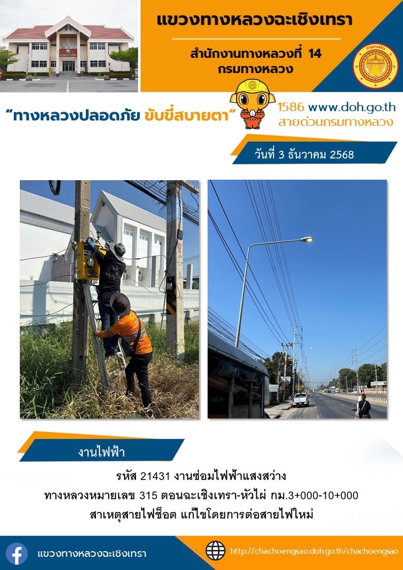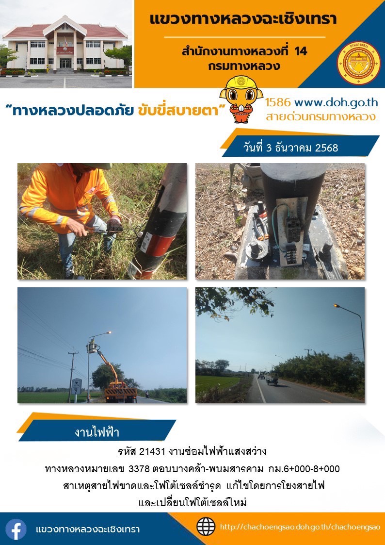 งานตรวจติดตั้งเสาไฟส่องสว่าง |