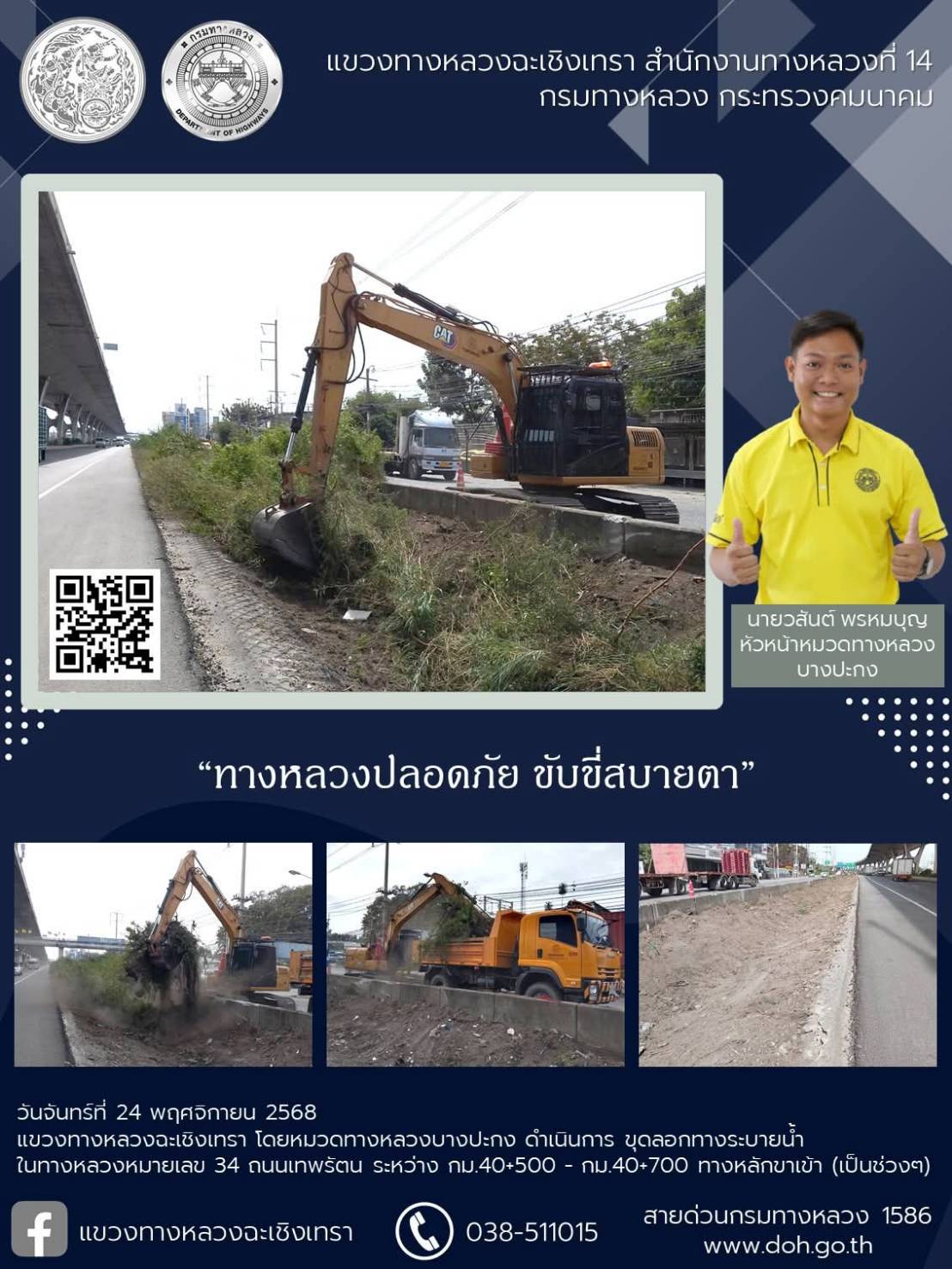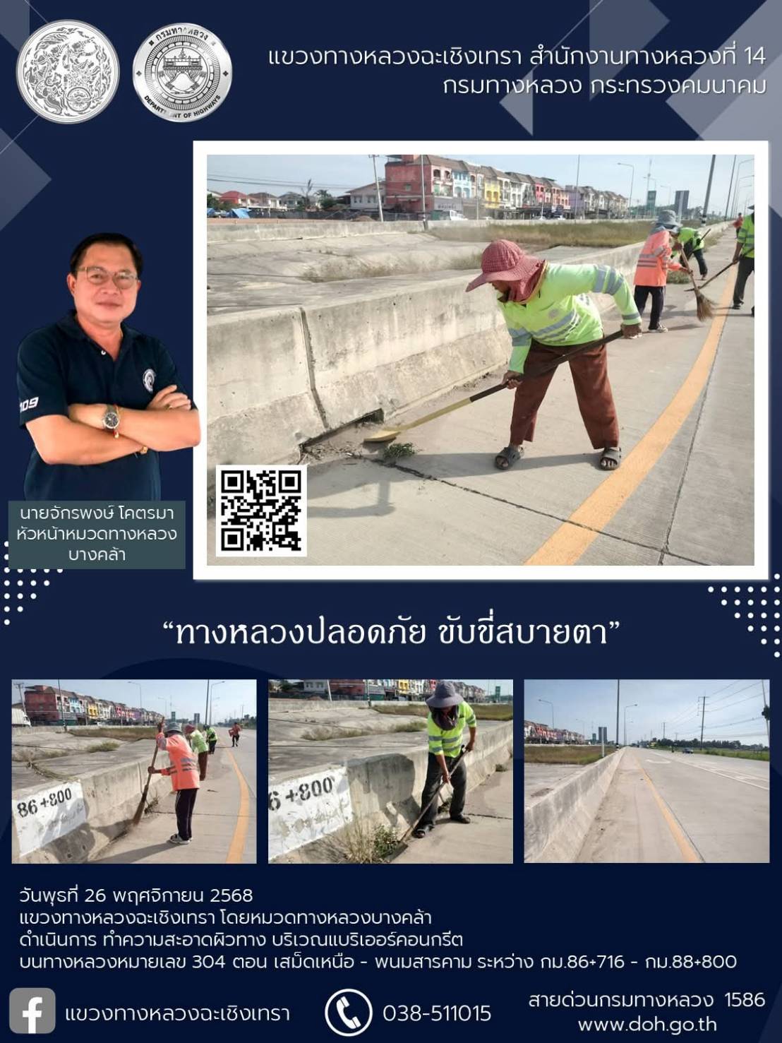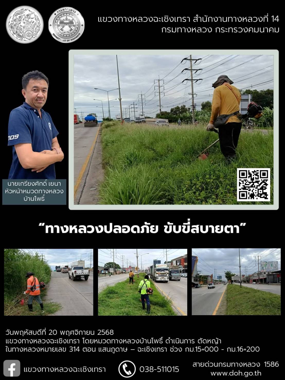 ตัดหญ้าบริเวณราวกันอันตราย |