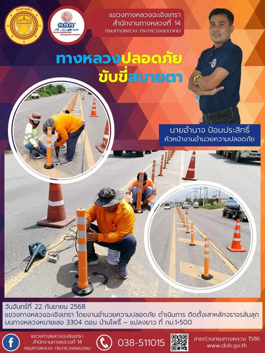 ติดตั้งเสาหลักจราจรล้มลุก |