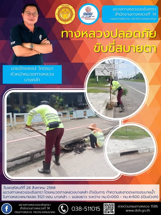 เปิดทางระบายน้ำที่ท่วมขังบนผิวทาง |