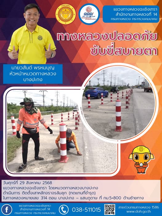 ติดตั้งเสาหลักจราจรล้มลุก |