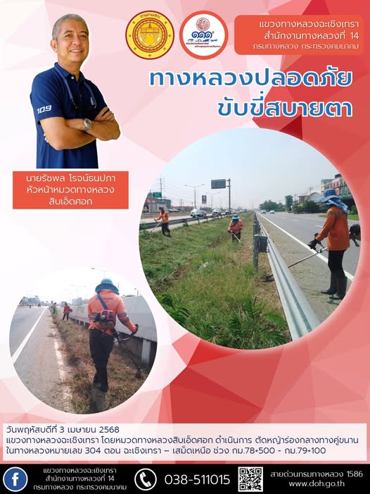 ตัดหญ้าร่องกลางทางคู่ขนาน |