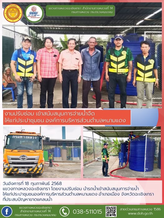 นำรถน้ำเข้าสนับสนุนการจ่ายน้ำให้แก่ “ประปาชุมชนองค์การบริหารส่วนตำบลหนามแดง” |