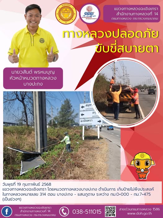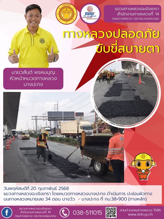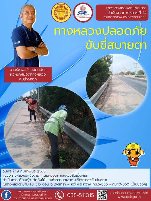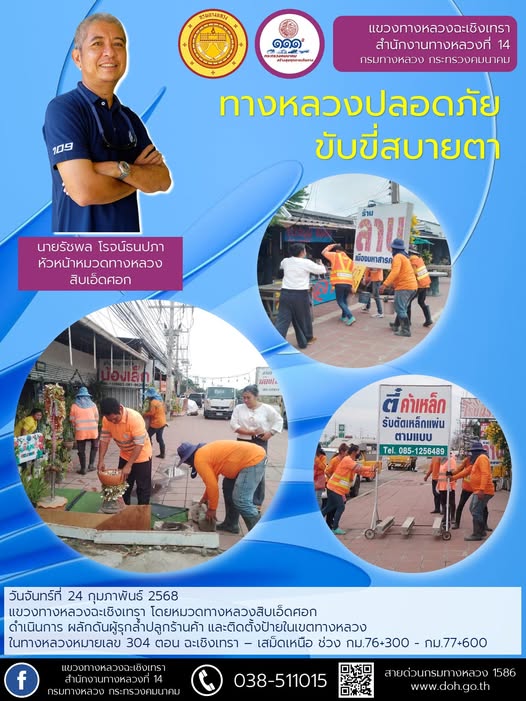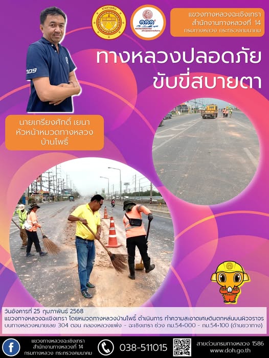 ทำความสะอาดเศษดินตกหล่นบนผิวจราจร |