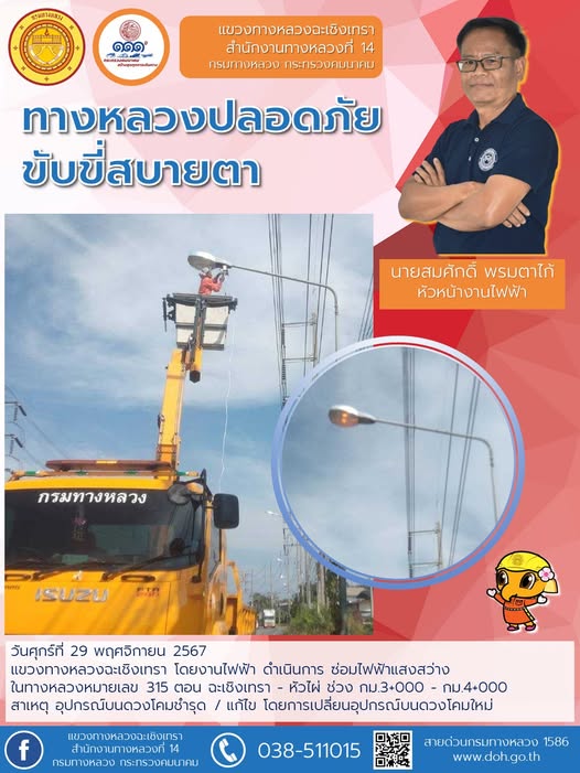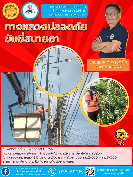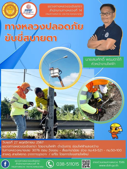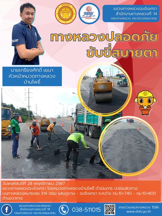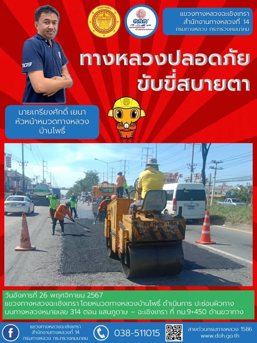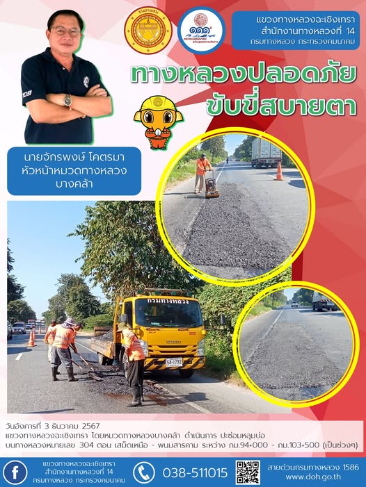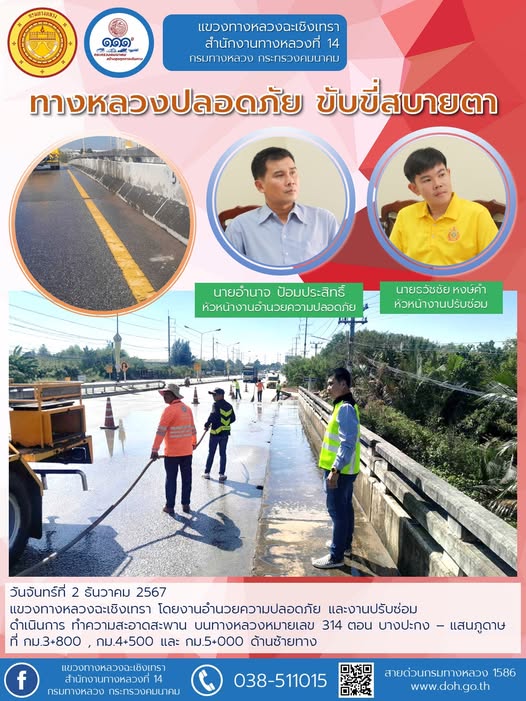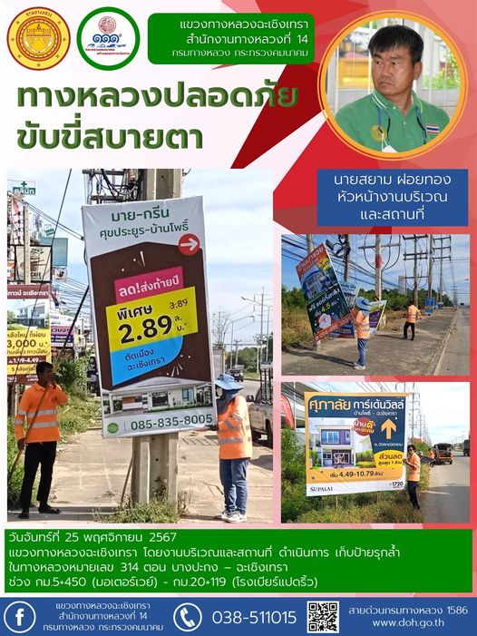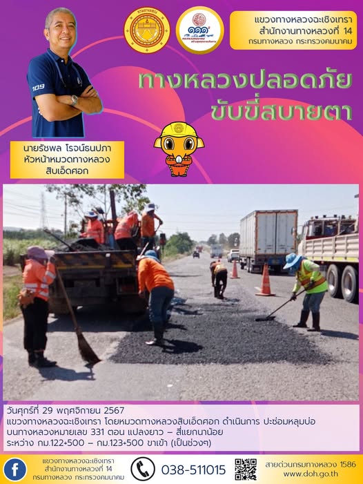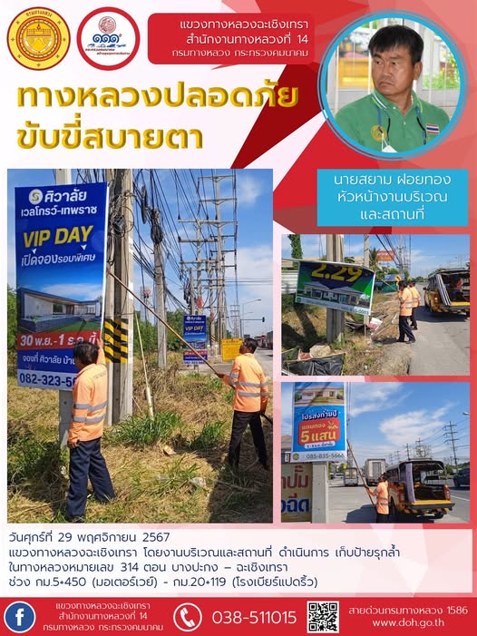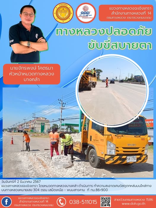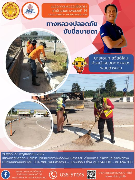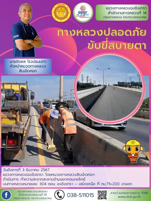 ทำความสะอาดเศษวัสดุตกหล่นบนไหล่ทาง |