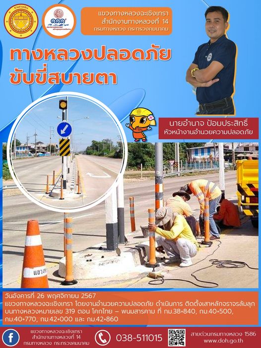 ติดตั้งเสาหลักจราจรล้มลุก |