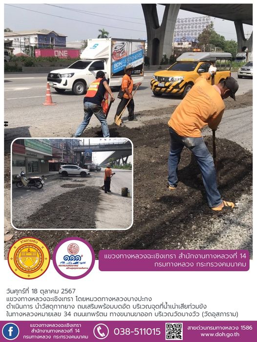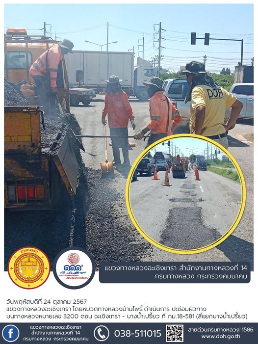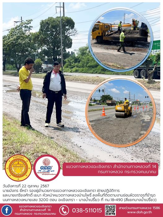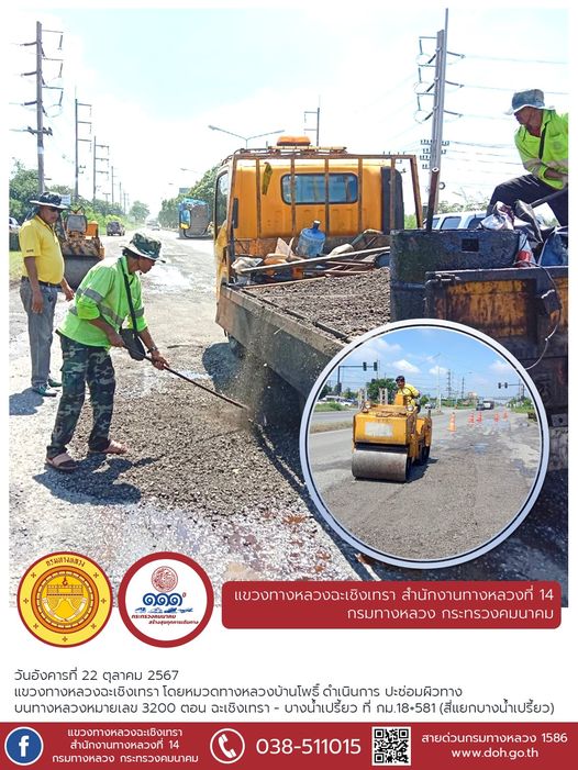 ติดตามงานซ่อมผิวจราจร ทล.3200 สี่แยกบางน้ำเปรี้ยว |