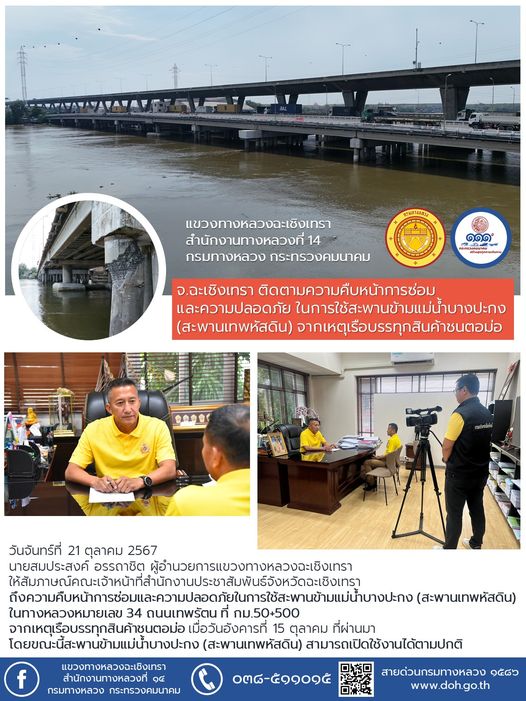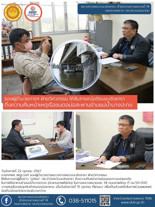 ความคืบหน้าเหตุเรือชนตอม่อสะพานข้ามแม่น้ำบางปะกง |