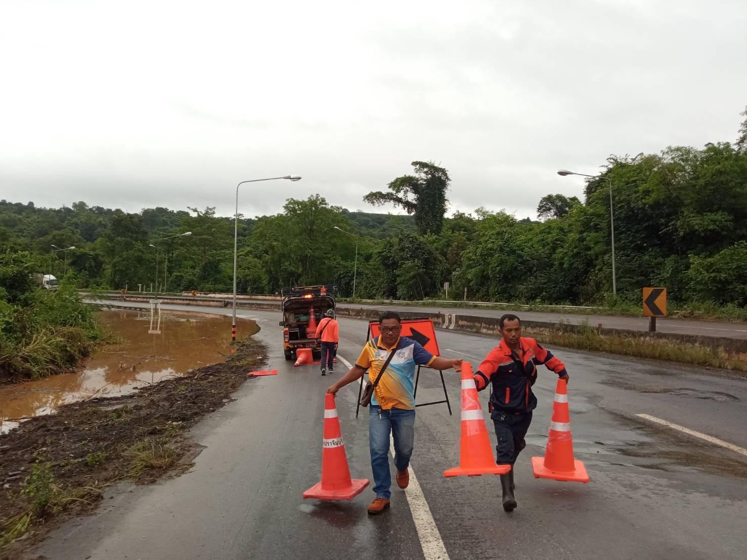 เนื่องจากสถานการณ์น้ำท่วม ทางหลวงหมายเลข 304 บริเวณอุโมงค์เชื่อมผืนป่าเขาใหญ่-ทับลาน ช่วง กม.191+600 - กม.196+000 มีปริมาณน้ำเพิ่มสูงขึ้นอย่างรวดเร็วและต่อเนื่อง จึงมีความจำเป็นต้องปิดเส้นทางการจราจร ช่วงบ้านห้วยกระบอก ถึงบริเวณอุโมงค์เชื่อมผืนป่าเขาใหญ่-ทับลาน ทั้งสองฝั่ง เพื่อความปลอดภัยของผู้ใช้เส้นทาง