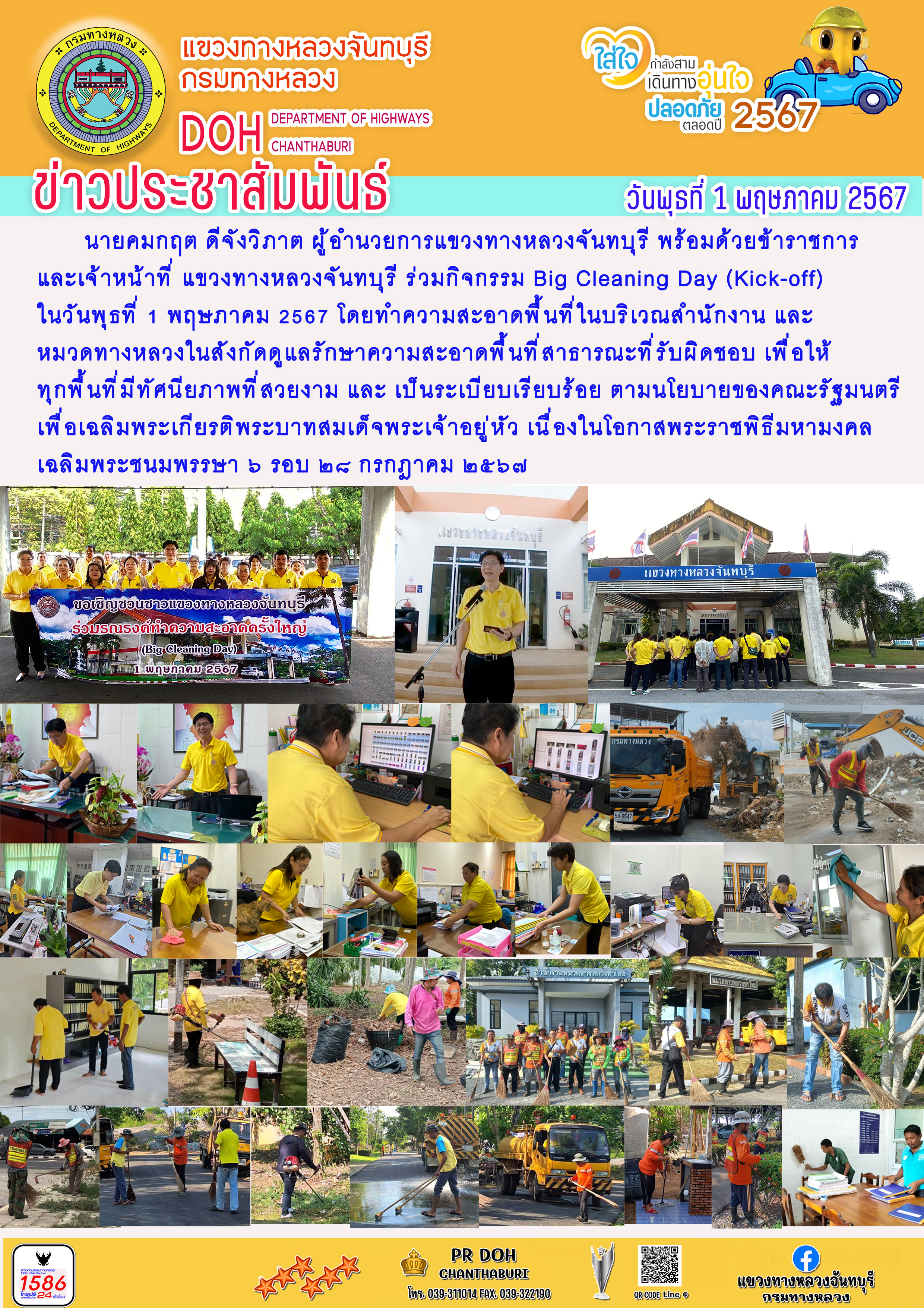 แขวงทางหลวงจันทบุรี ร่วมกิจกรรม Big Cleaning Day (Kick-off)ในวันพุธที่ 1 พฤษภาคม 2567