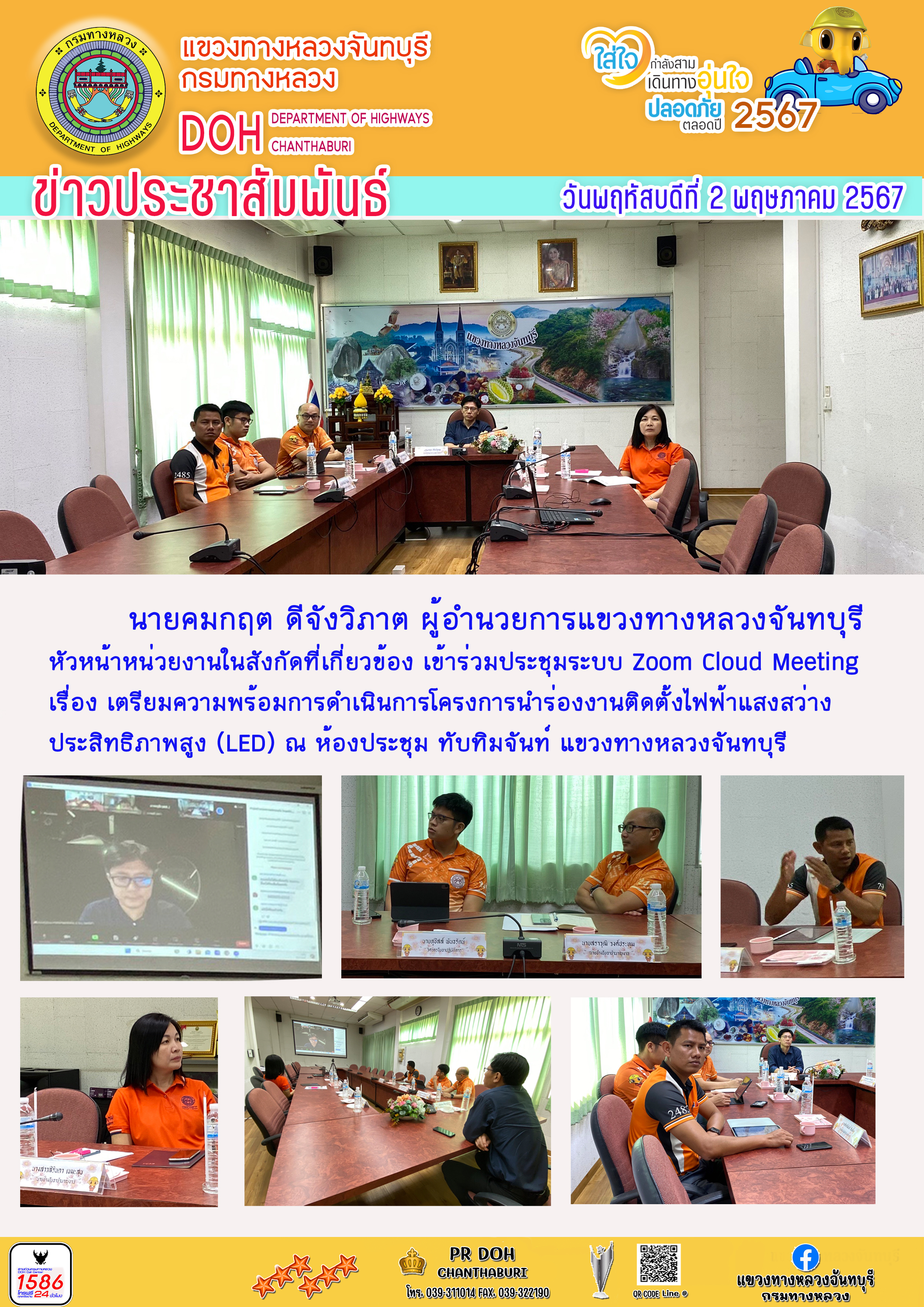 แขวงทางหลวงจันทบุรี ได้เข้าประชุมเตรียบความพร้อมการดำเนินการโครงการนำร่องงานติดตั้งไฟฟ้าแสงสว่างประสิทธิภาพสูง (LED)