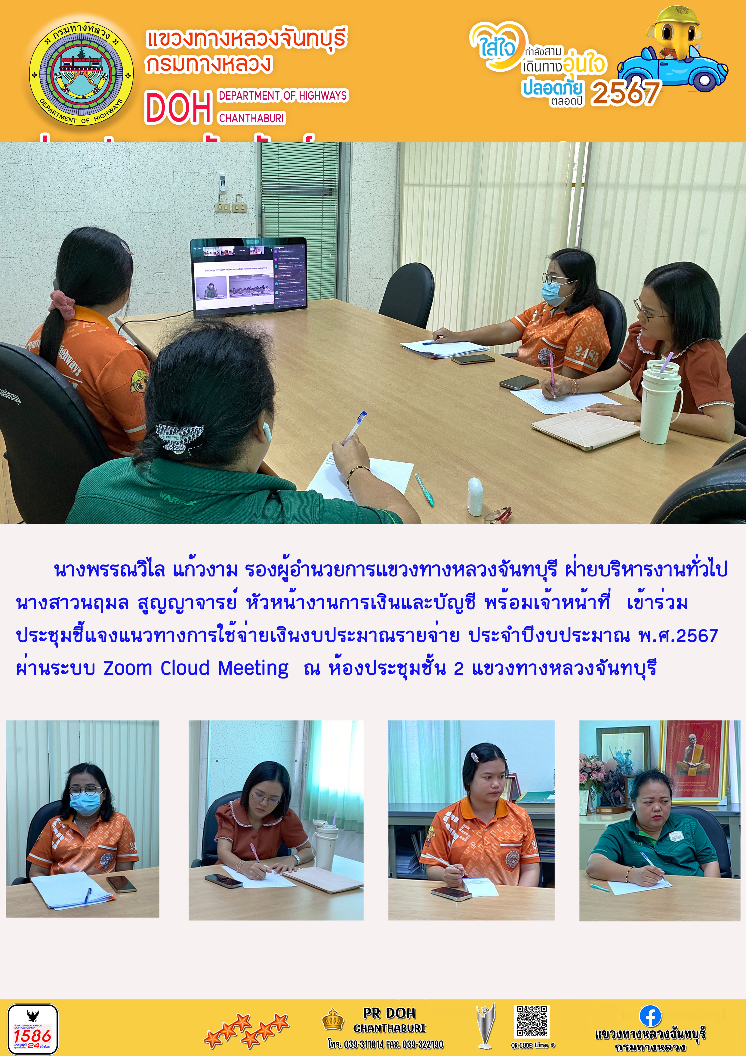 แขวงทางหลวงจันทบุรี เข้าร่วมประชุมชี้แจงแนวทางการใช้จ่ายเงินงบประมาณรายจ่าย ประจำปีงบประมาณ พ.ศ.2567
