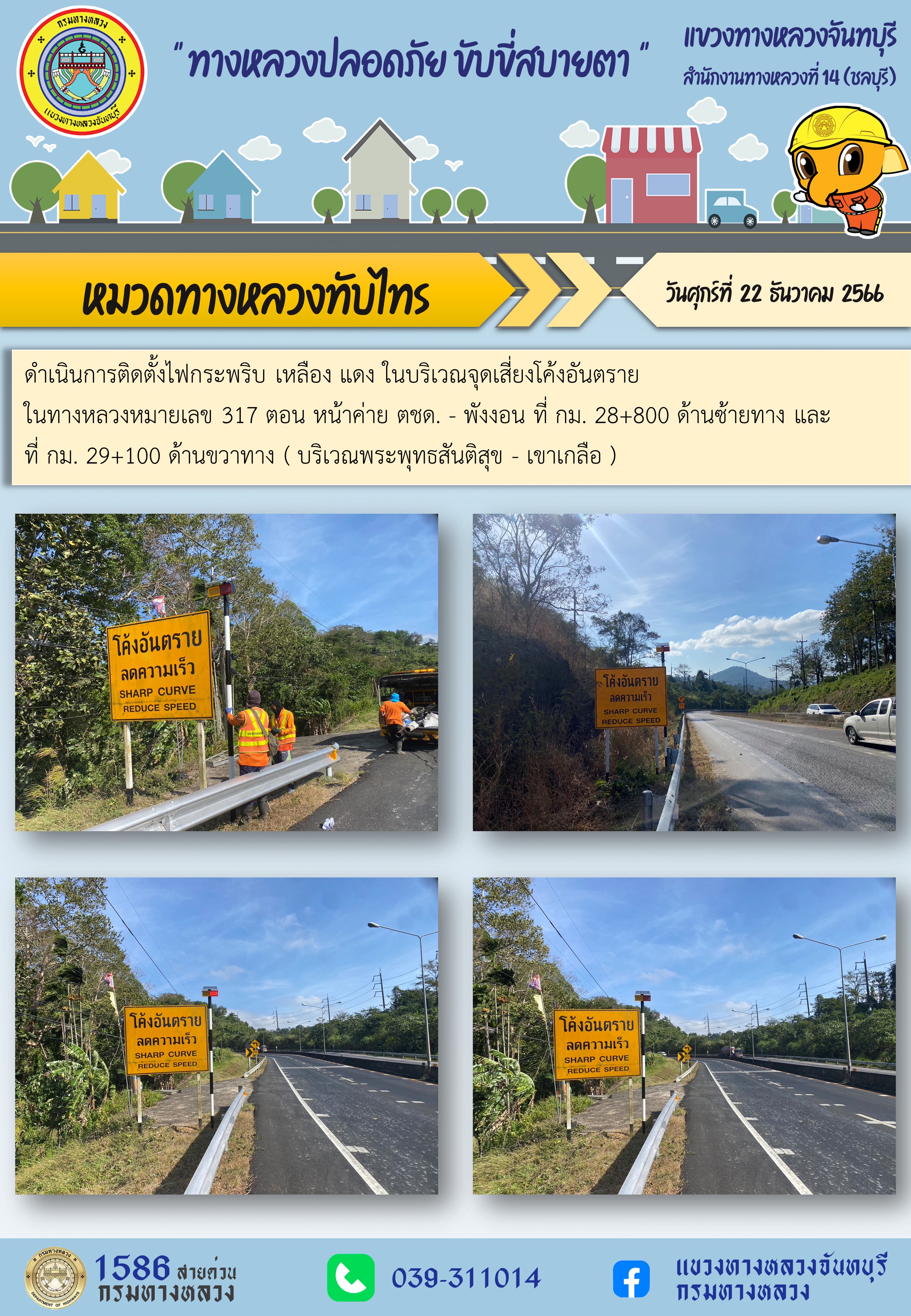 เปิดการจราจรในถนนเส้นทางหลัก Main Road " ในทางหลวงหมายเลข 317 (สายจันทบุรี - สระแก้ว) ตอน อ.โป่งน้ำร้อน - อ.สอยดาว ระหว่าง กม.63+000-กม.65+600 ในวันศุกร์ที่ 22 ธันวาคม 2566