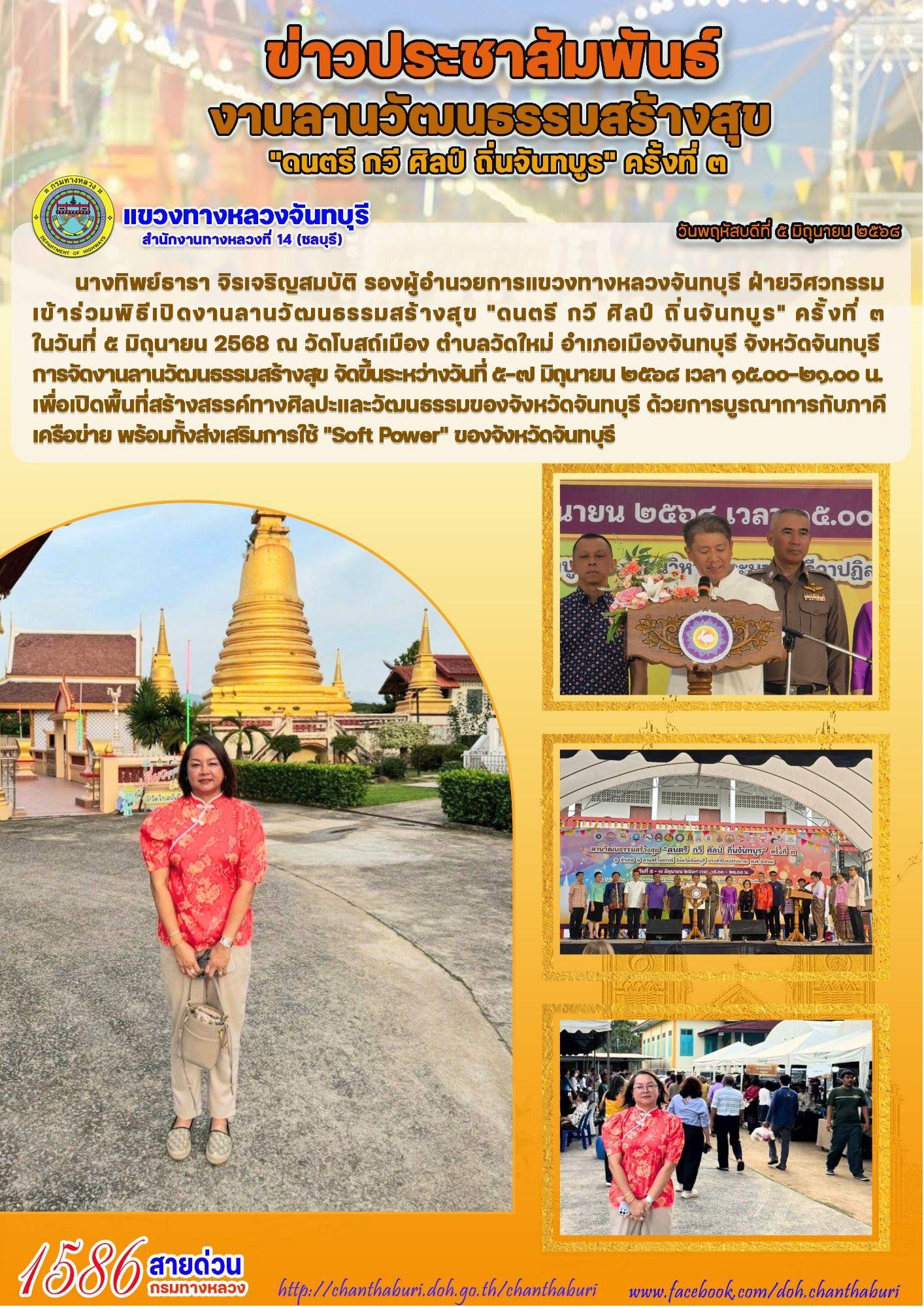 เข้าร่วมพิธิเปิดงานลานวัฒนธรรมสร้างสุข “ดนตรี กวี ศิลป์ ถิ่นจันทบูร” ครั้งที่ 3
