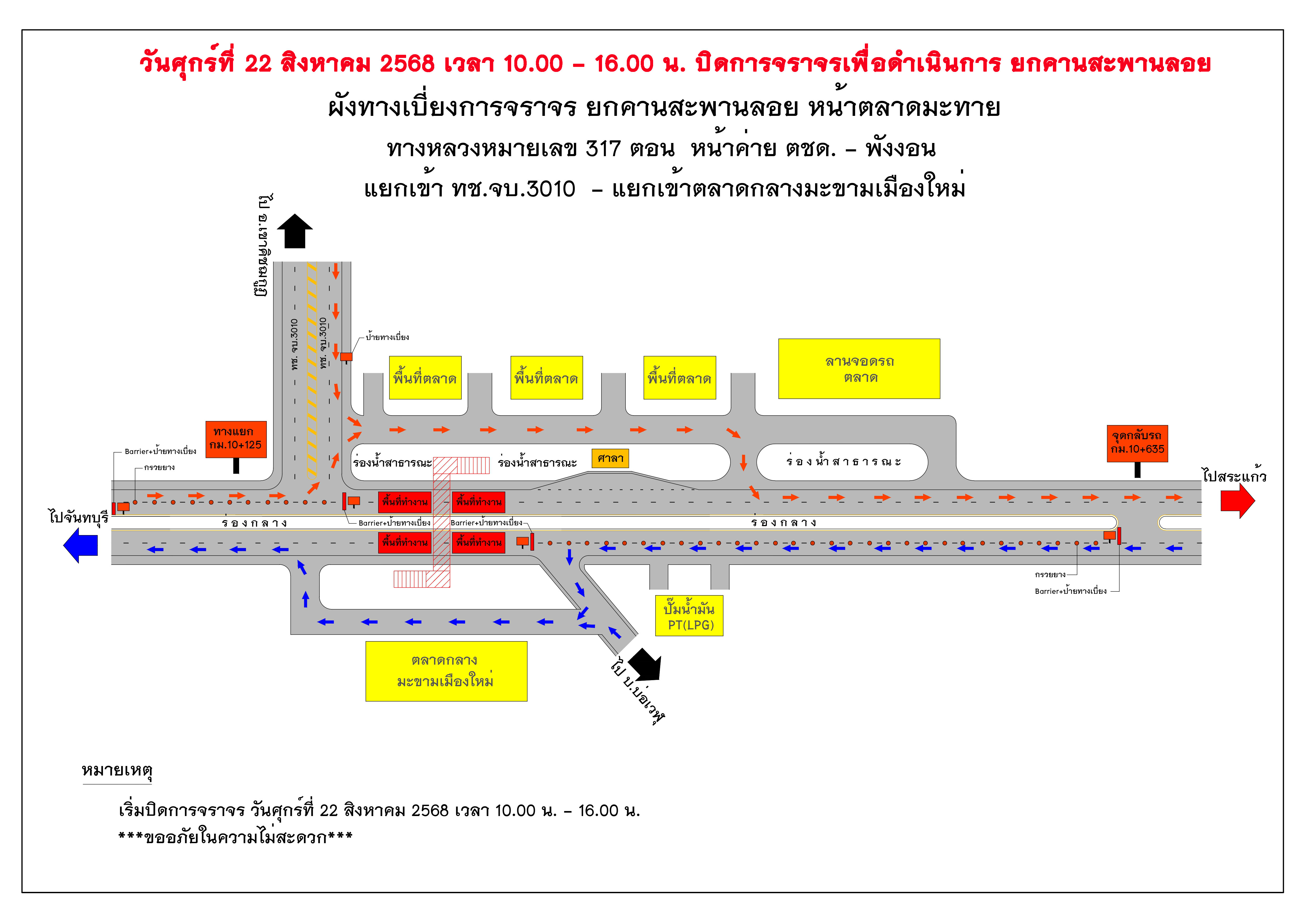 แจ้งปิดการจราจร เพื่อยกคานสะพานลอย ทางหลวงหมายเลข 317 ตอน หน้าค่าย ตชด. - พังงอน