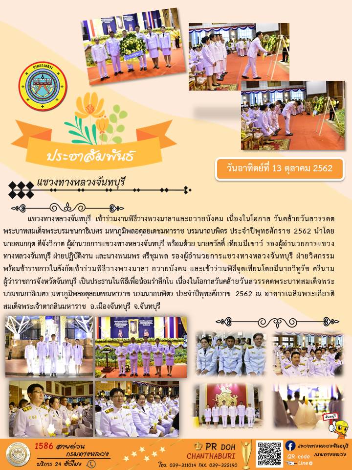 พิธีวางพวงมาลาและถวายบังคม เนื่องในโอกาส วันคล้ายวันสวรรคตพระบาทสมเด็จพระบรมชนกาธิเบศร มหาภูมิพลอดุลยเดชมหาราช บรมนาถบพิตร ประจำปีพุทธศักราช 2562 |