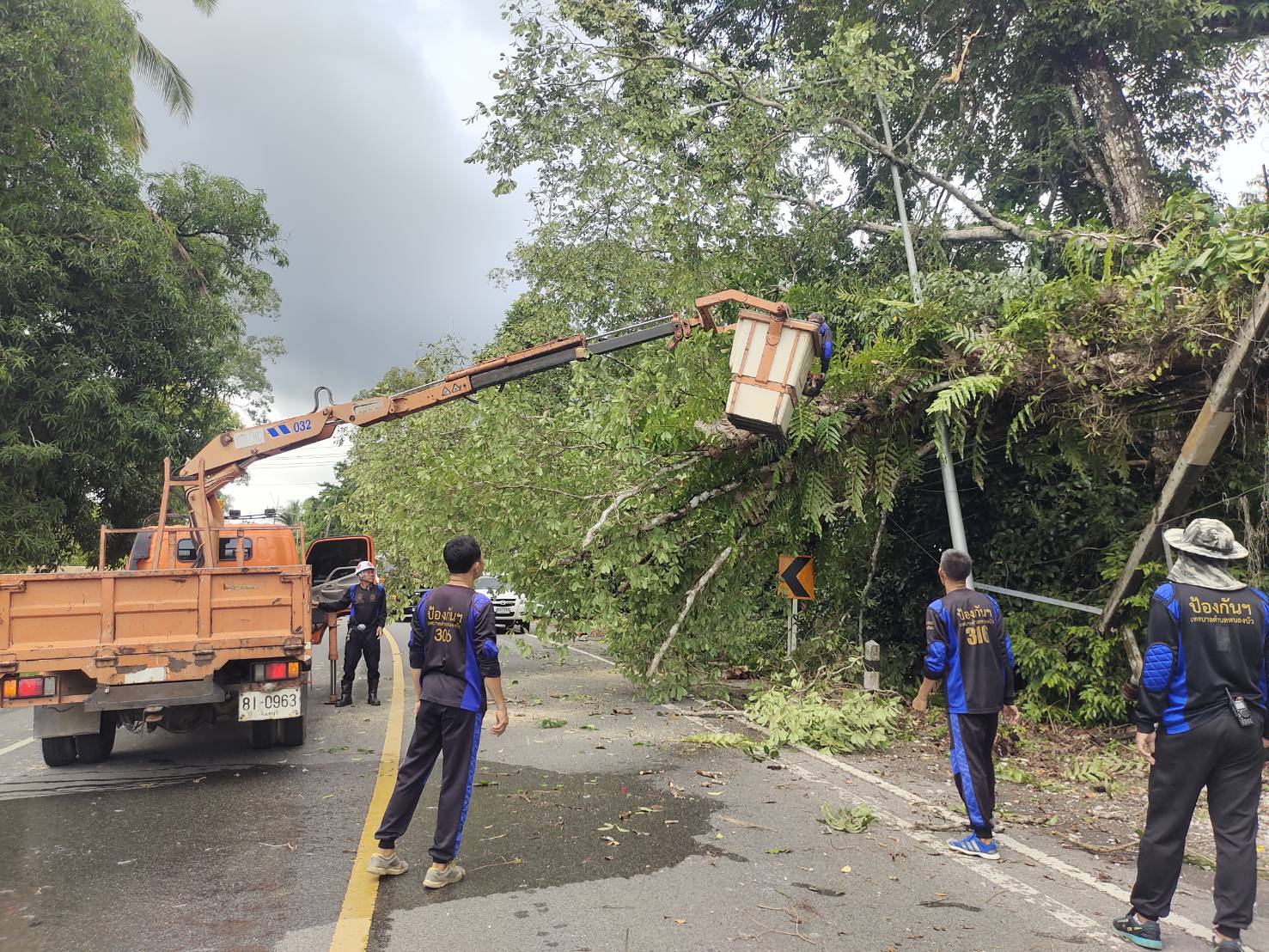 หมวดทางหลวงบางกะจะ แขวงทางหลวงจันทบุรี ร่วมกับ หน่วยงานเทศบาลตำบลหนองบัว ดำเนินการตัดต้นไม้ที่ล้มกีดขวางช่องทางจราจร ในทางหลวงหมายเลข 3348 ตอน หนองขอน - จันทนิมิต