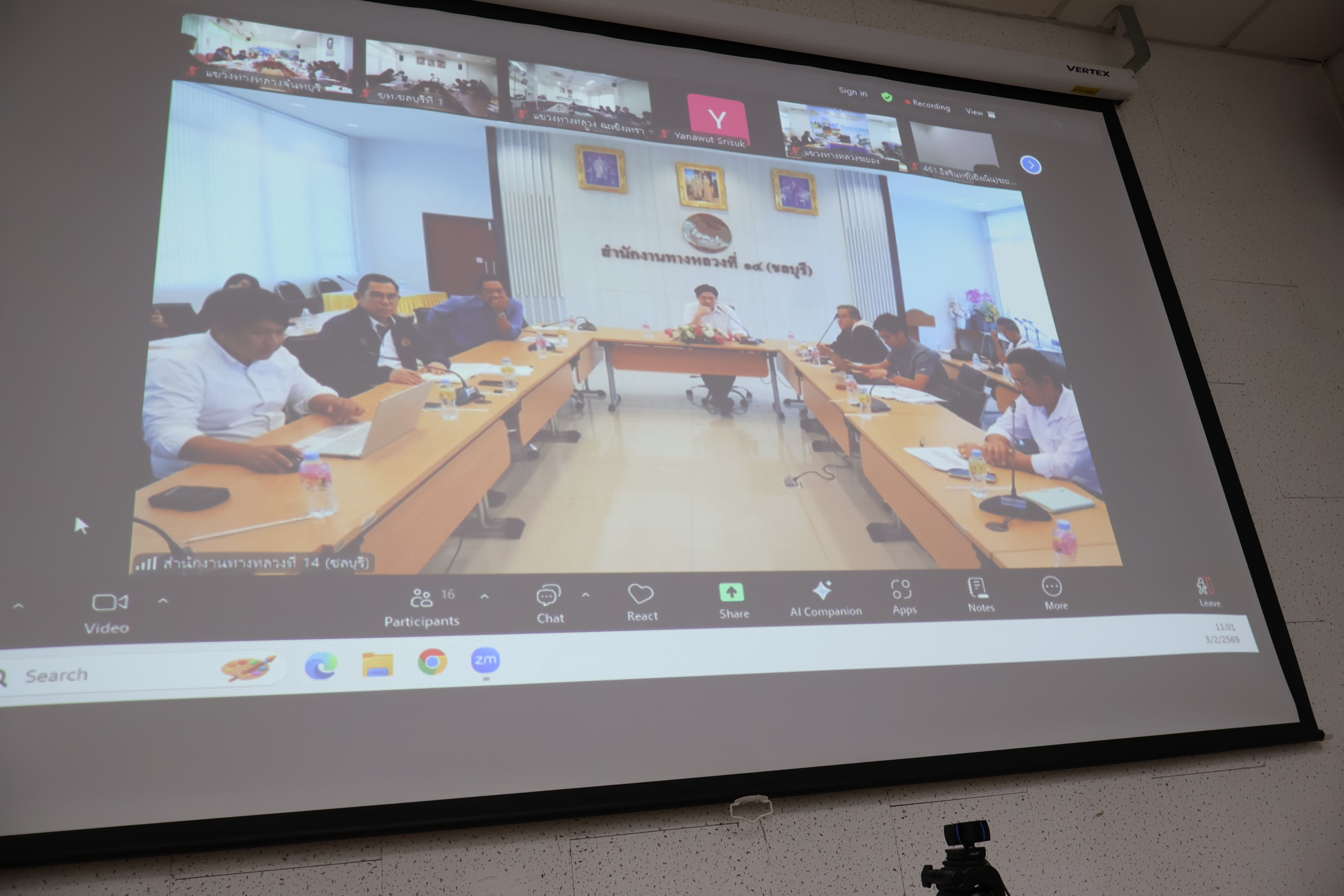 นายยุทธนา พิทักษ์ ผู้อำนวยการแขวงทางหลวงจันทบุรี มอบหมายให้ นายพงษ์สิทธิ์ มามิดา รองผู้อำนวยการแขวงทางหลวงจันทบุรี ฝ่ายปฏิบัติการ, นางทิพย์ธารา จิรเจริญสมบัติ รองผู้อำนวยการแขวงทางหลวงจันทบุรี ฝ่ายวิศวกรรม, และช่างผู้ควบคุมงานฯ ผู้ช่วยช่างควบคุมงานฯ เข้าร่วมประชุมรับทราบแนวทางการปฏิบัติงานการตรวจสอบความปลอดภัยทางถนนระหว่างก่อสร้าง (RSA) ของสำนักงานทางหลวงที่ ๑๔ ตามคู่มือการตรวจสอบความปลอดภัยงานทางสำหรับกรมทางหลวง โดยมีนายคมกฤต ดีจังวิภาต รองผู้อำนวยการสำนักงานทางหลวงที่ ๑๔ เป็นประธานการประชุมฯ ผ่านระบบ Zoom cloud meeting ณ ห้องประชุมทับทิมจันท์ แขวงทางหลวงจันทบุรี ในวันอังคารที่ 3 กุมภาพันธ์ 2569