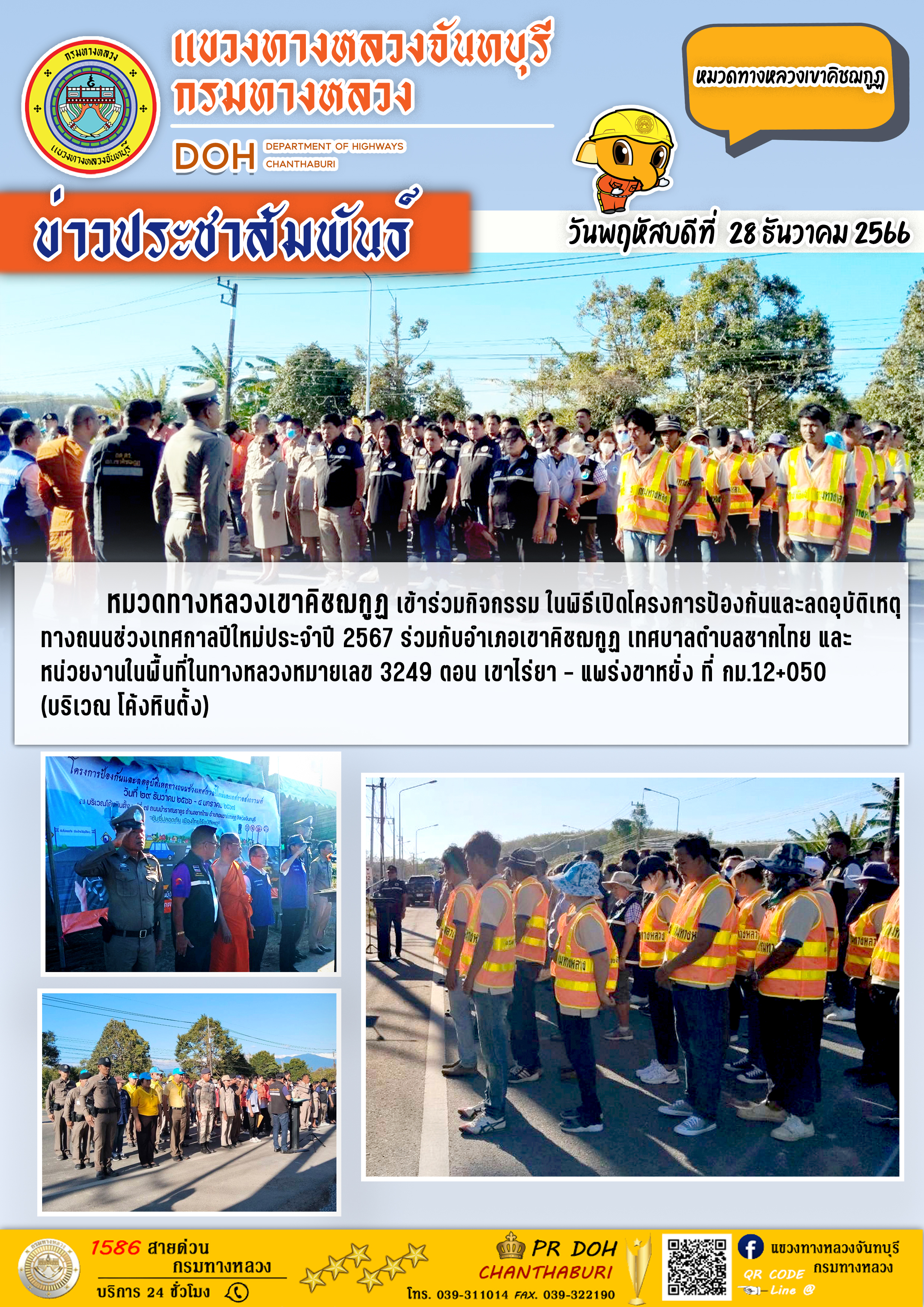 หมวดทางหลวงเขาคิชฌกูฎ เข้าร่วมกิจกรรม ในพิธีเปิดโครงการป้องกันและลดอุบัติเหตุทางถนนช่วงเทศกาลปีใหม่ประจำปี 2567