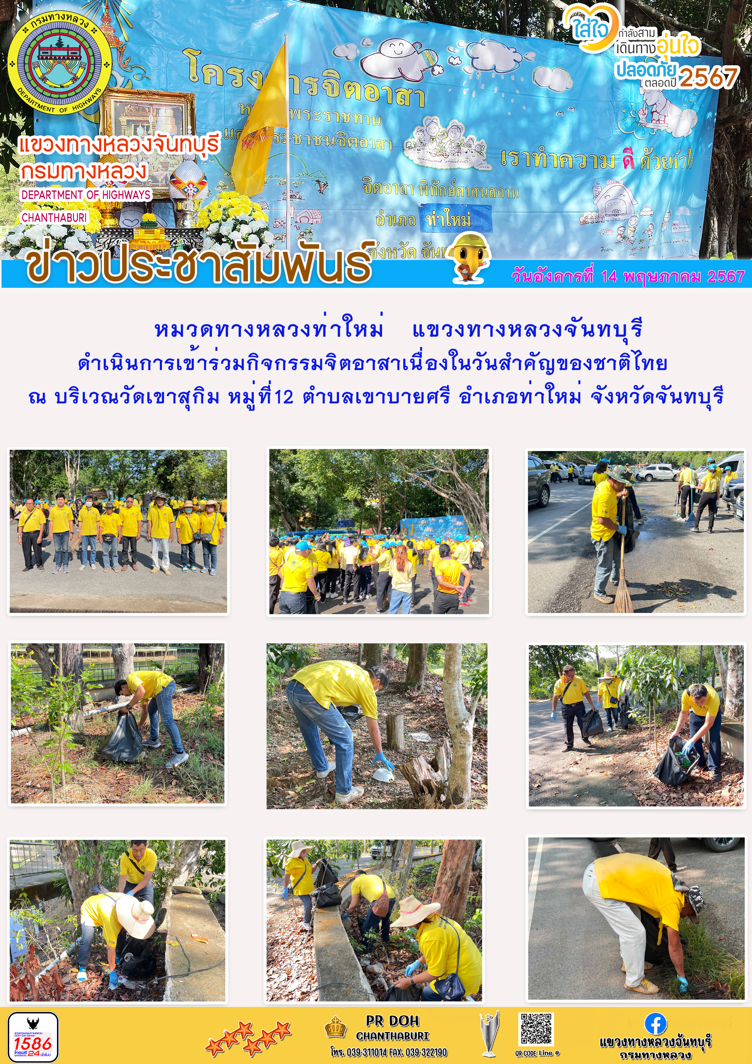 หมวดทางหลวงท่าใหม่ ดำเนินการเข้าร่วมกิจกรรมจิตอาสาเนื่องในวันสำคัญของชาติไทย