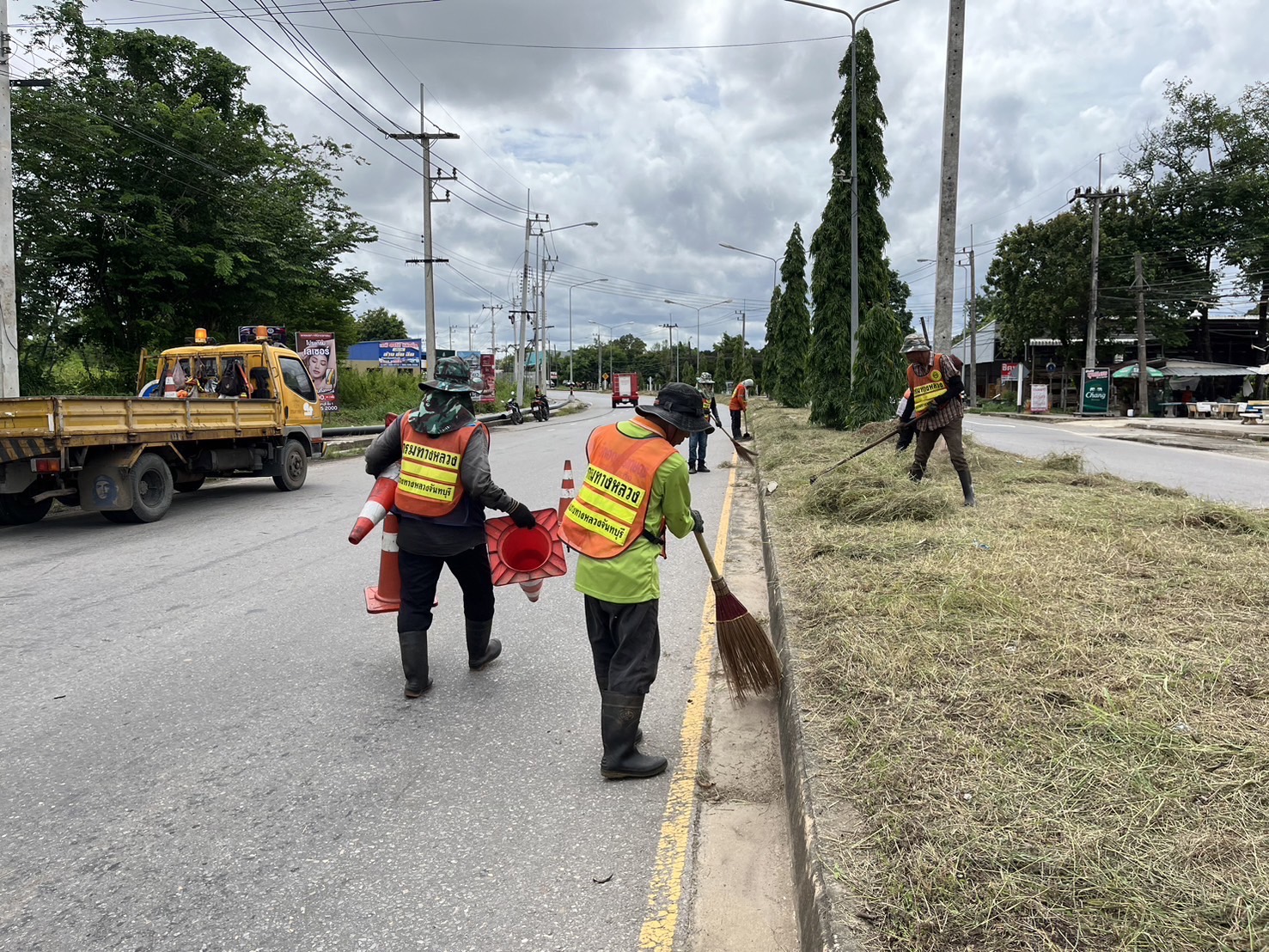 หมวดทางหลวงพลับพลาแขวงทางหลวงจันทบุรี ร่วมกับเทศบาลตำบลพลับพลานารายณ์ ดำเนินการทำความสะอาดเกาะแบ่งถนน