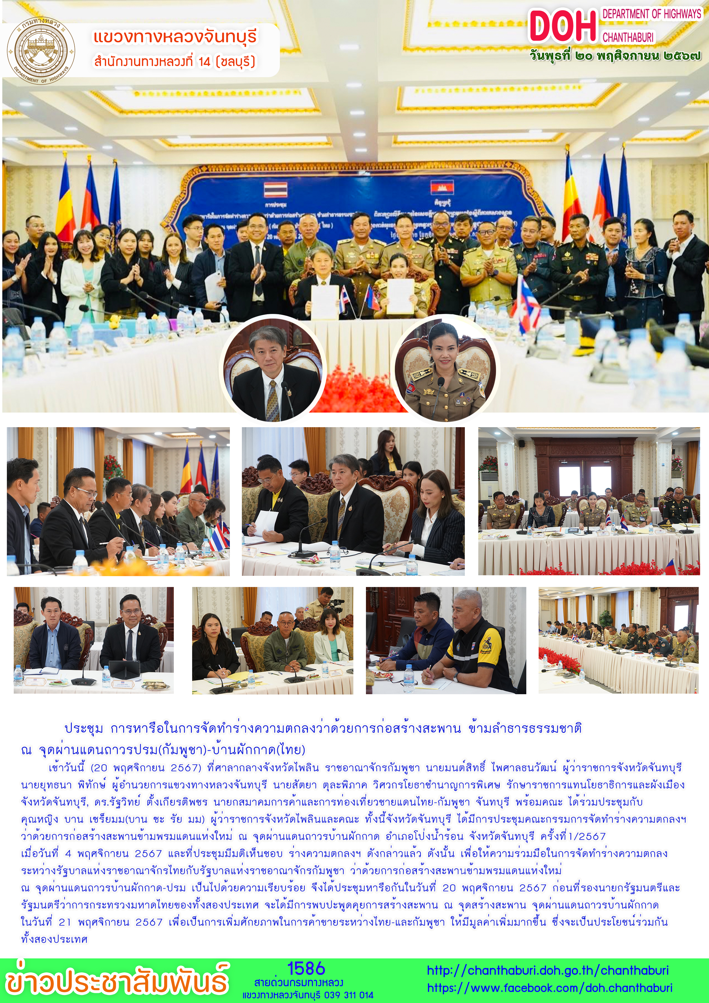 แขวงทางหลวงจันทบุรี เข้าร่วมประชุมการหารือในการจัดทำร่างความตกลงว่าด้วยการก่อสร้างสะพาน ข้ามลำธารธรรมชาติ