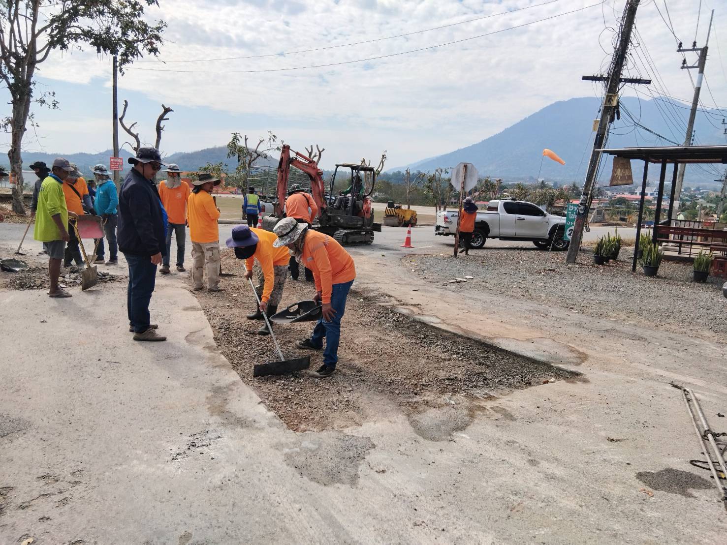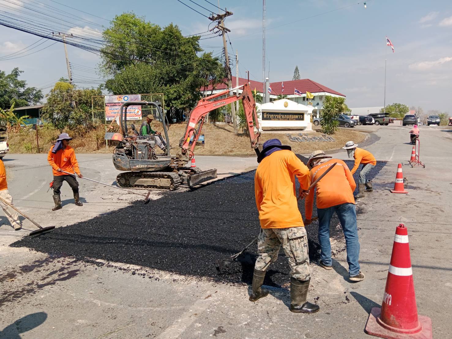 ดำเนินการซ่อมผิวทางตามเส้นทางเสด็จ หน้าที่ว่าการอำเภอสอยดาว
