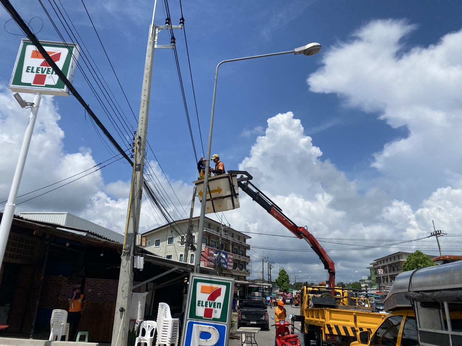 งานไฟฟ้า แขวงทางหลวงจันทบุรี ดำเนินการตรวจสอบความปลอดภัย วันไหลสงกรานต์อำเภอมะขาม