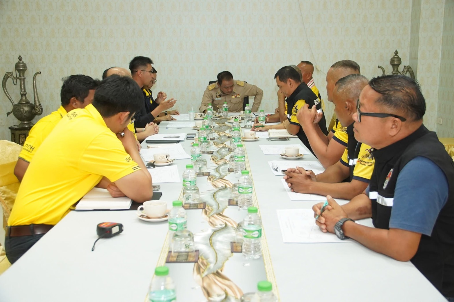 นายกรณ์ วัฒนชัย ผู้อำนวยการส่วนสำรวจและออกแบบ สำนักงานทางหลวงที่ ๑๔ นางทิพย์ธารา จิรเจริญสมบัติ รองผู้อำนวยการแขวงทางหลวงจันทบุรี ฝ่ายวิศวกรรม นายสราวุฒิ วงศ์ประทุม นายช่างโยธาชำนาญงาน นายภูชิสส์ พันธรัตน์ วิศวกรโยธาปฏิบัติการ นายกฤษฎา จันทร์มณี หัวหน้าหมวดทางหลวงหนองตาคง เข้าร่วมการประชุม โครงการเพิ่มประสิทธิภาพการค้าขายชายแดนและยกระดับเศรษฐกิจชายแดนด้านจังหวัดจันทบุรี กิจกรรมบูรณะทางผิวแอสฟัลต์ ในทางหลวงหมายเลข 3405 ตอน บ้านแหลม - ทุ่งขนาน พร้อมด้วย ดร.รัฐวิทย์ ตั้งเกียรติพชร นายกสมาคมการค้าและการท่องเที่ยวชายแดนไทย - กัมพูชา จันทบุรี ผู้นำท้องถิ่น ร่วมประชุม โดยมีนายธวัชชัย นามสมุทร รองผู้ว่าราชการจังหวัดจันทบุรี เป็นประธานฯ ในวันจันทร์ที่ 9 มิถุนายน 2568 ณ ห้องประชุม สำนักงานตลาดบ้านแหลม