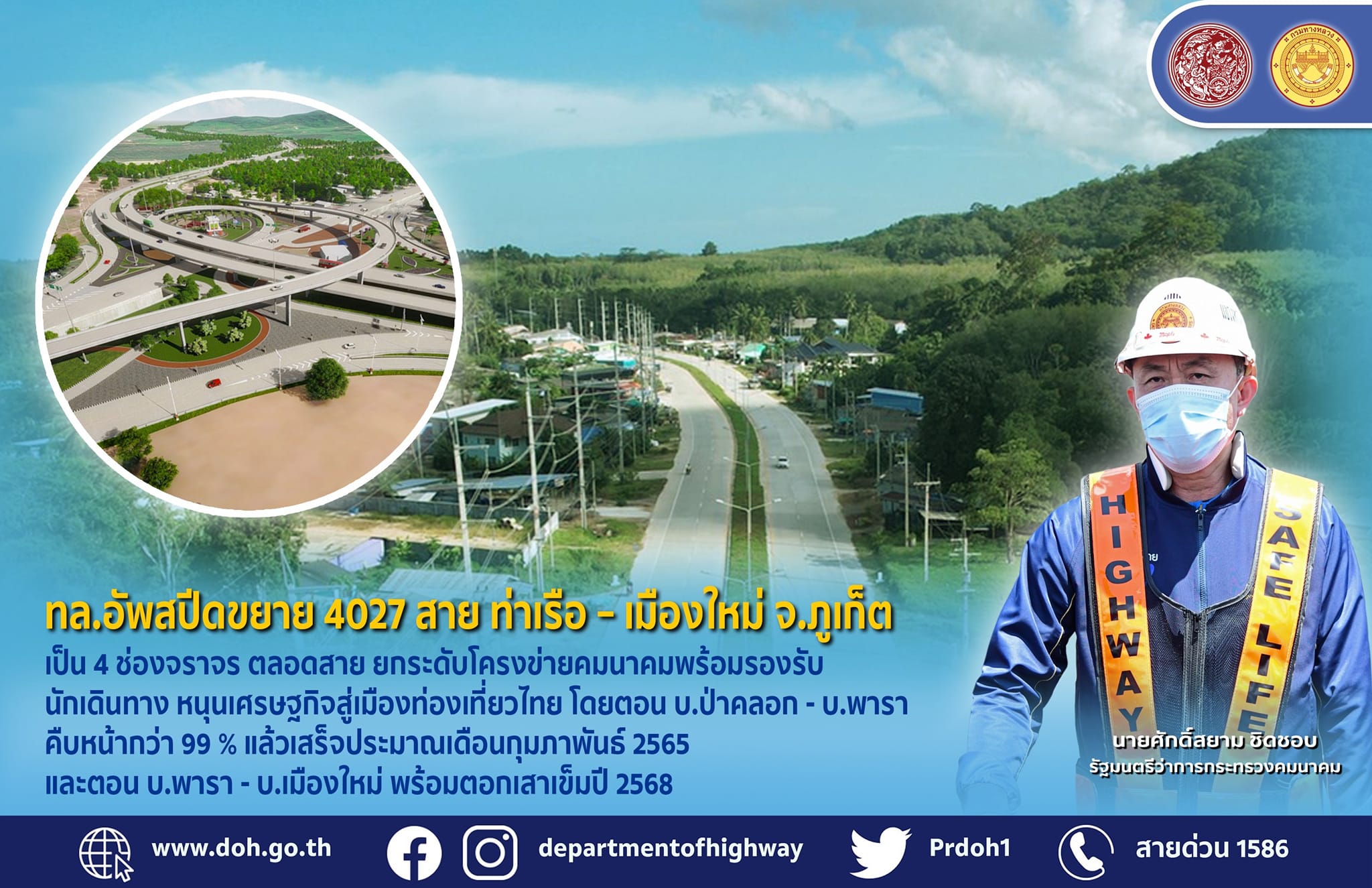 ทล.อัพสปีดขยาย 4027 สาย ท่าเรือ – เมืองใหม่ จ.ภูเก็ต เป็น 4 ช่องจราจร ตลอดสาย