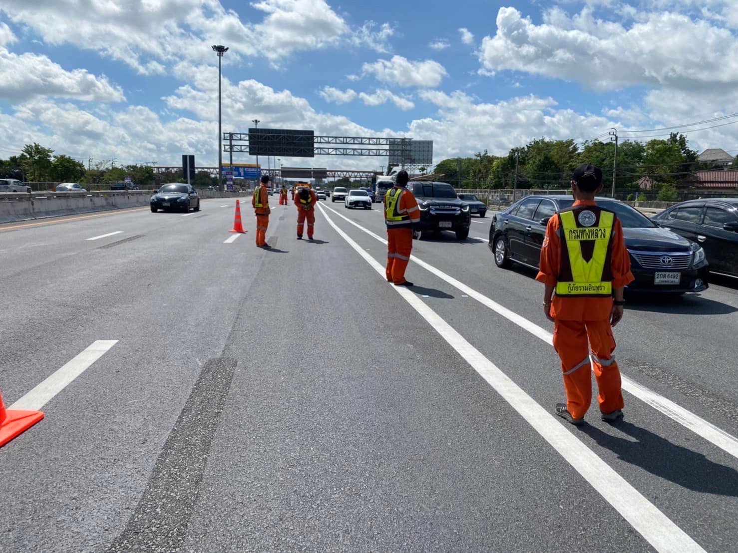 และอำนวยความสะดวกการจราจรบริเวณหน้าด่านเก็บเงินทั้ง 4 ด่านฯ และกรมทางหลวงต้องขออภัยต่อประชาชนผู้ใช้ทางในความไม่สะดวกครั้งนี้ด้วย โดยได้