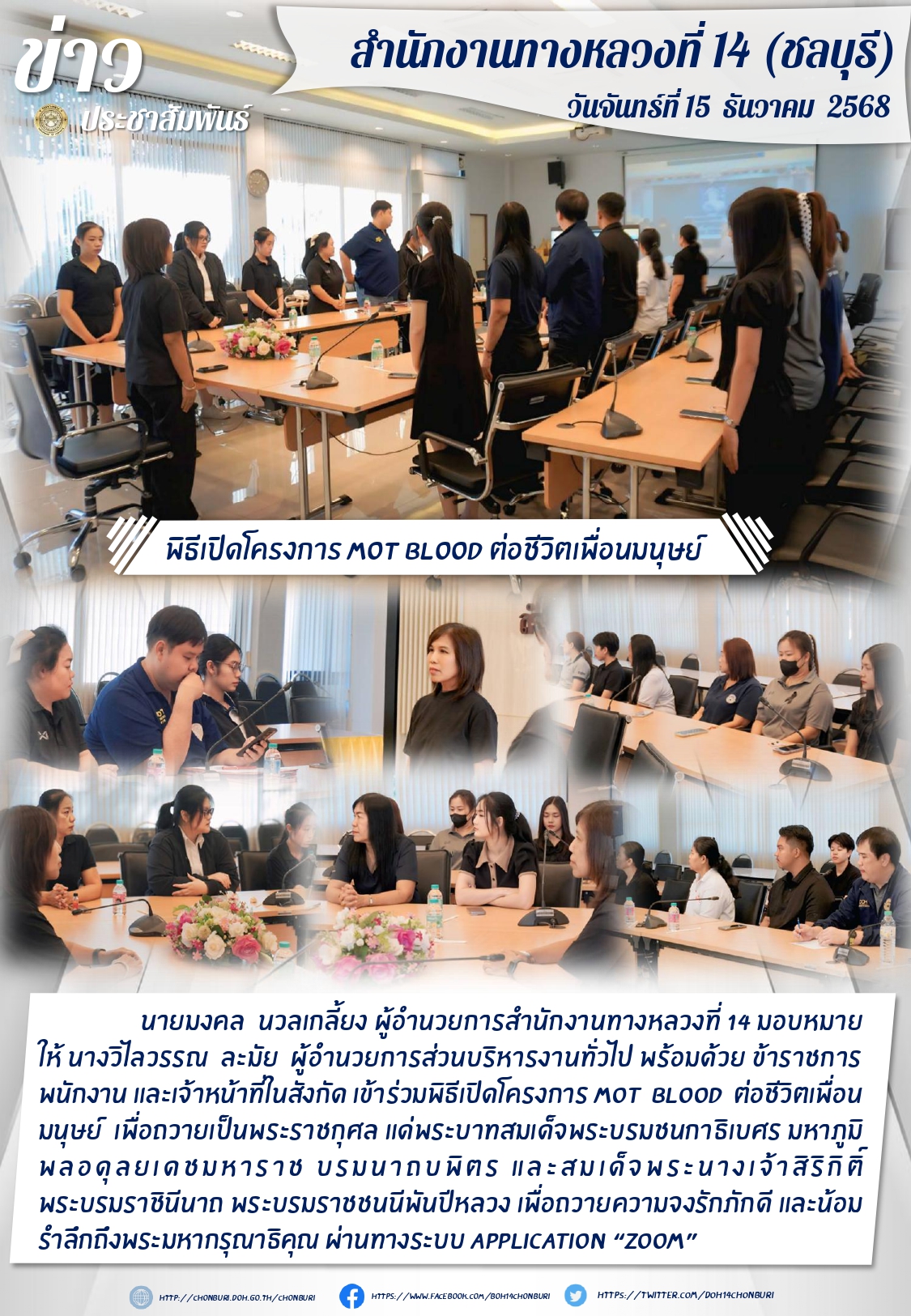 พร้อมด้วย ข้าราชการ พนักงาน และเจ้าหน้าที่ในสังกัด เข้าร่วมพิธีเปิดโครงการ MOT BLOOD ต่อชีวิตเพื่อนมนุษย์