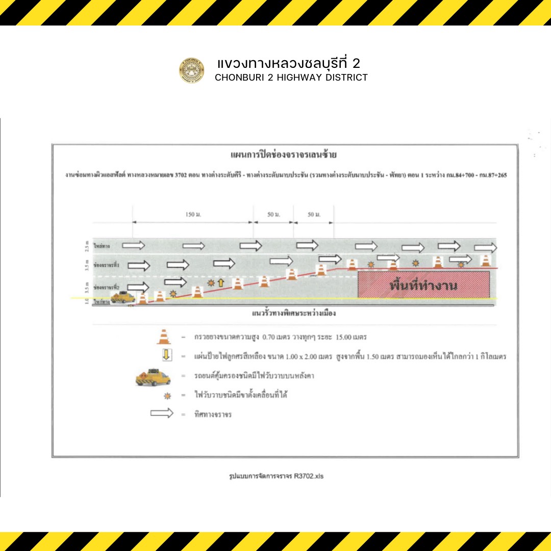 7 26/03/2568 แจ้งพื้นที่ก่อสร้างงานจ้างเหมา ทำการกิจกรรมบำรุงรักษาทางหลวง งานซ่อมทางผิวแอสฟัลต์ บริเวณทางหลวงหมายเลข 3702