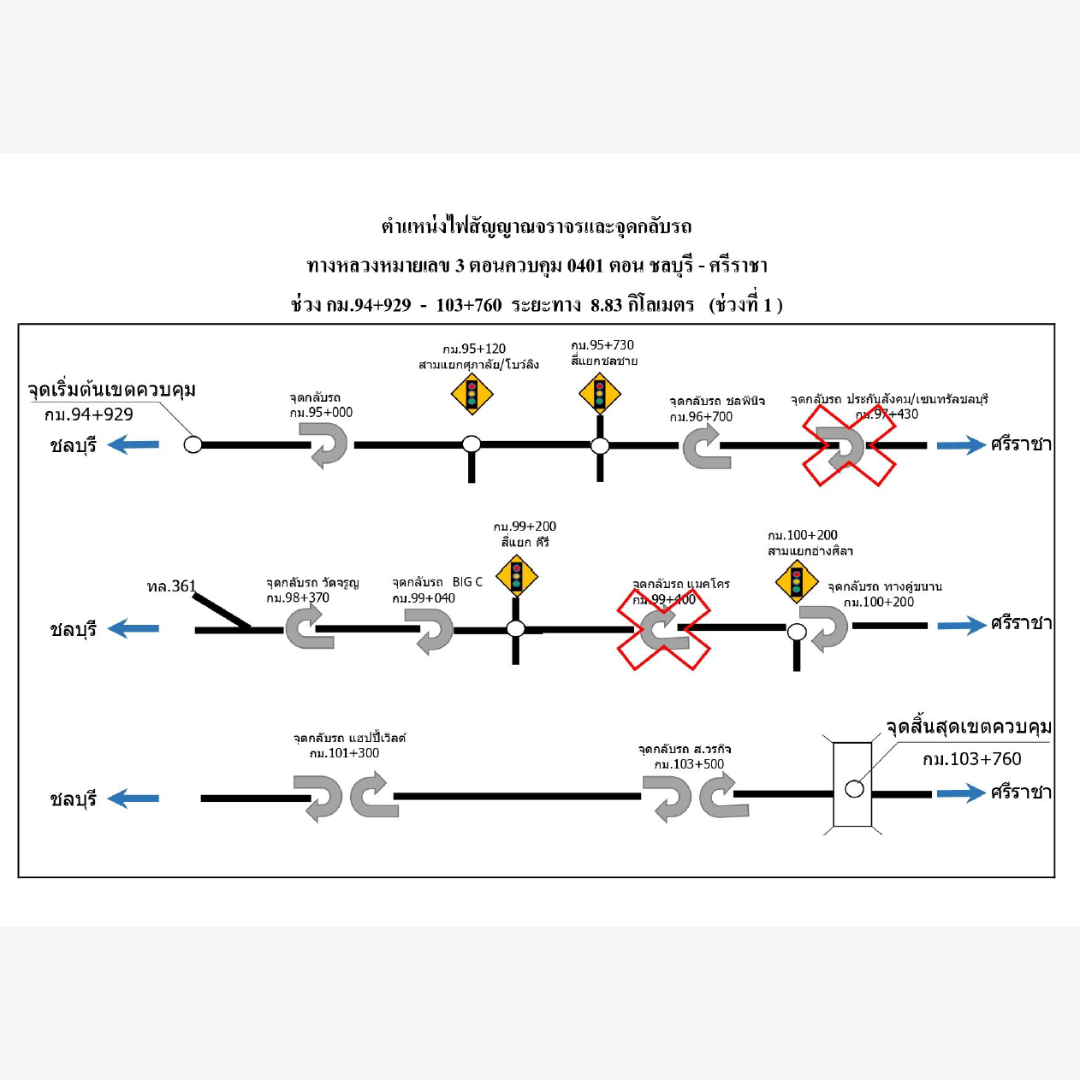 3 08/09/2568 ประกาศปิดจุดกลับรถบริเวณสะพานข้ามคลองบ้านนา ทางหลวงหมายเลข 3 ถนนสุขุมวิท บริเวณ กม.129+612 ตั้งเเต่บัดนี้เป็นต้นไปจนกว่าน้ำจะลดระยะปลอดภัย