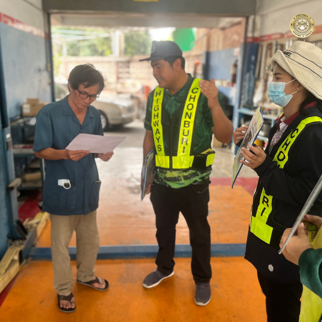 เจ้าหน้าที่หมวดทางหลวงบางละมุง ร่วมลงพื้นที่ ประชาสัมพันธ์ แจกใบปลิว เชิญชวนประชาชน