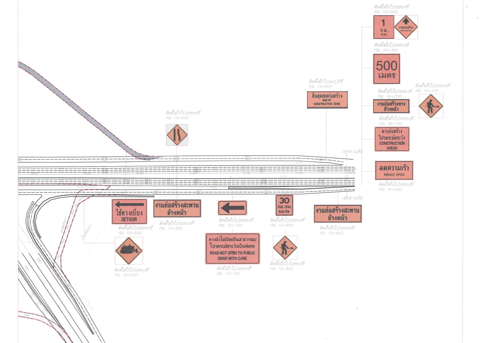 แผนผังการจัดการจราจรงานก่อสร้างปรับปรุงทางแยกต่างระดับเขาไม้แก้ว จ.ชลบุรี จุดตัดทางหลวงหมายเลข 36 กม.15+221.000 กับทางหลวงหมายเลข 331 กม.25+800.000 ระหว่างวันที่ 21 กุมภาพันธ์ - 27 กุมภาพันธ์ 2565