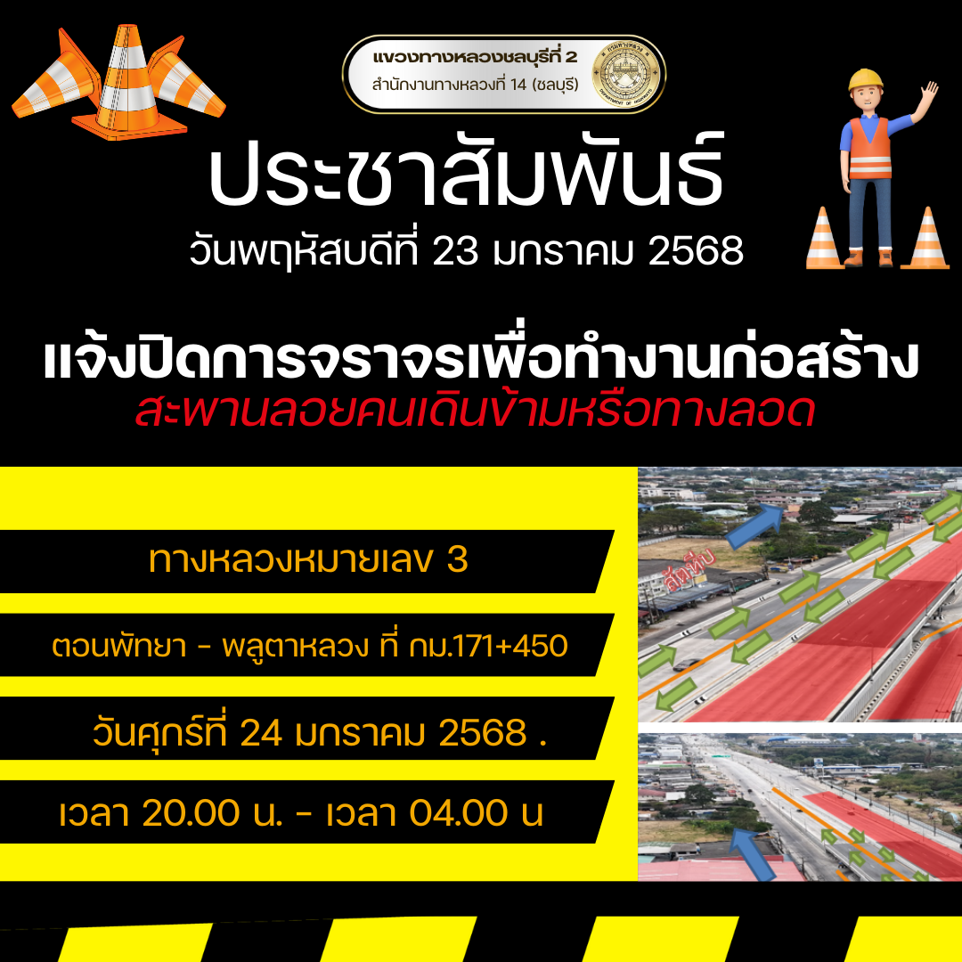 แขวงทางหลวงชลบุรีที่ 2 ขออภัยในความไม่สะดวกอย่างสูง