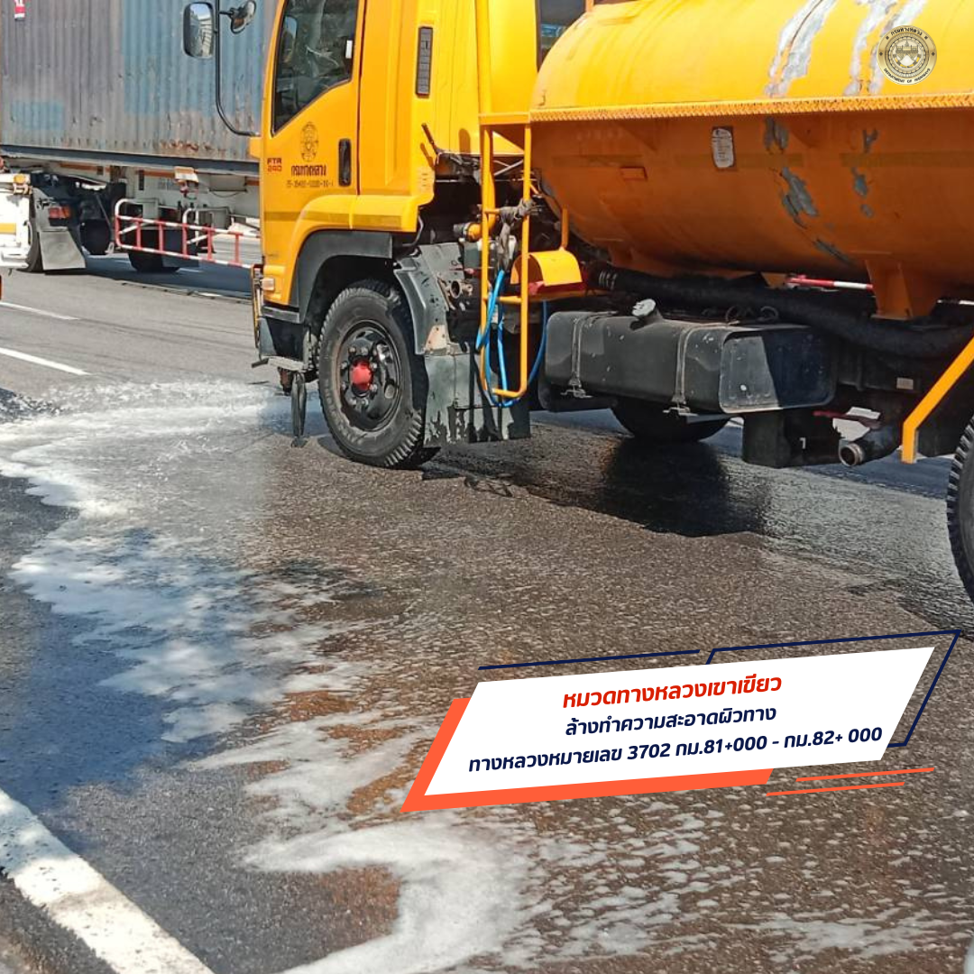 โดยใช้วิธีการฉีดพ่นน้ำ บริเวณในสายทาง