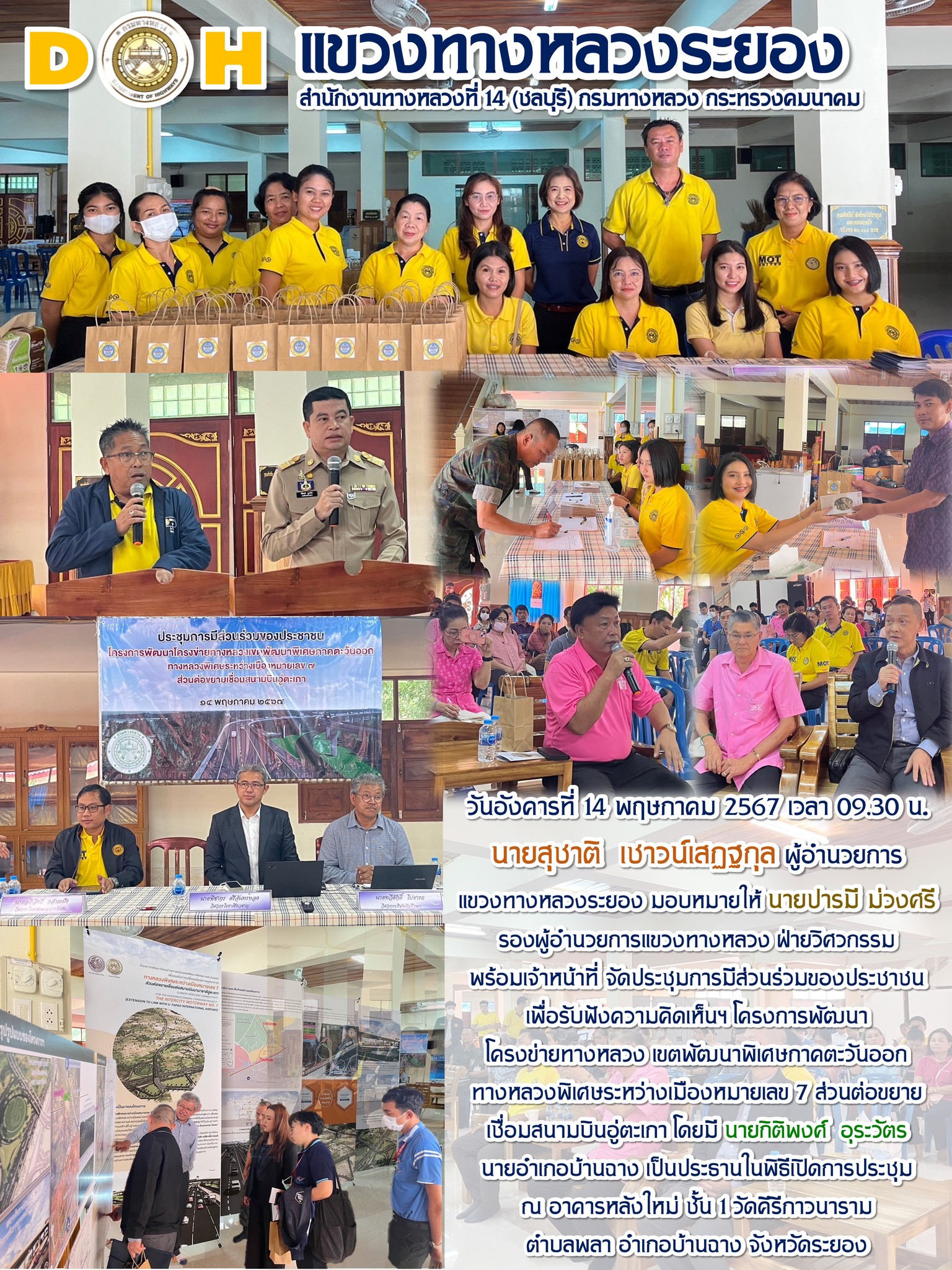 ประชุมการมีส่วนร่วมของประชาชน โครงการพัฒนาโครงข่ายทางหลวงเขตพัฒนาพิเศษภาคตะวันออก ทางหลวงพิเศษระหว่างเมืองหมายเลข 7 ส่วนต่อขยายเชื่อมสนามบินอู่ตะเภา